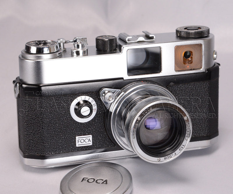 光学機器メーカーとして戦前から軍事用機器等を製造していた、フランスのOPL社(Optique et Precision de Levallois)の距離計式カメラ、フォカの最終モデル、フォカ・ユニバーサル RC。通称U.R.C。フォカの最終型にして最上級モデル。シャッター速度はT、B、1〜1/1000。1962〜63年の製造です。