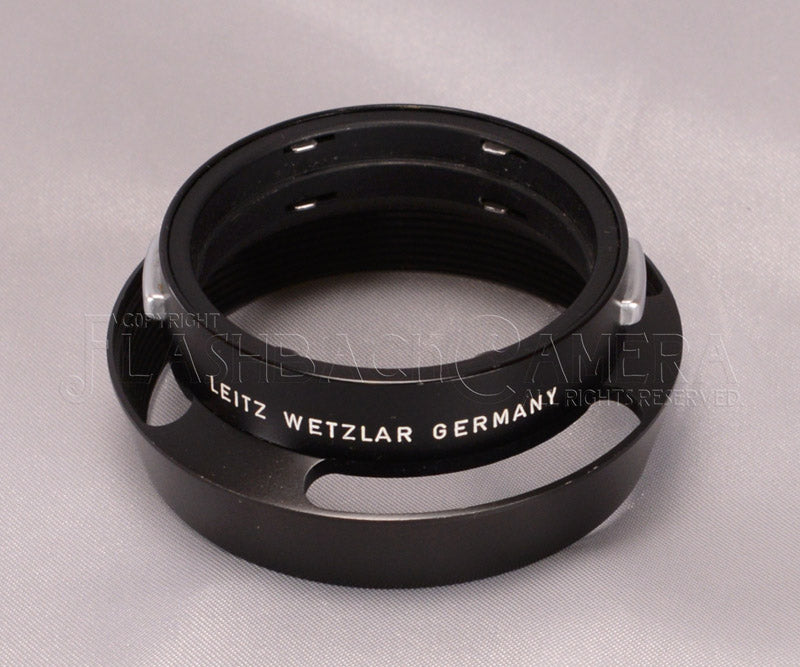 ライツの12585レンズフード。Summicron 35mm f2、50mm f2等、E39径のレンズのほとんどに装着可能なド定番フード。IROOAフードの後継品にあたります。ズマロンやエルマーにも。35/2の刻印の無い初期タイプ。