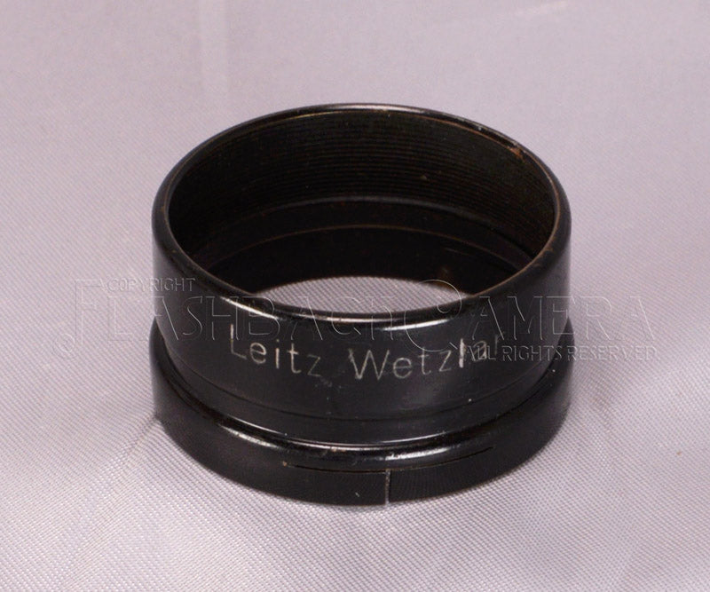 FISON。ライカ A型時代のエルマー 50mm用レンズフード。真鍮にブラックペイント。留めネジの無い、比較的初期のモデルです。一体成形タイプ。「Leitz Wetzlar」の銀象嵌入り。