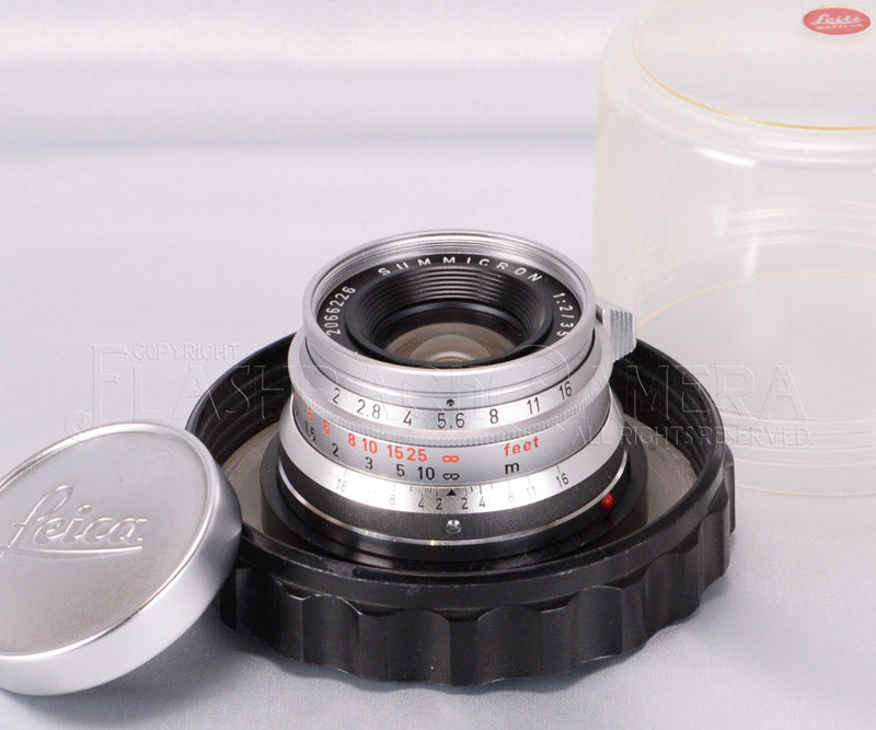 見事に綺麗な8枚玉ズミクロン。ライツのコードはSAWOM、後に11308。206万台。1964年製のズミクロン 35mm f2、8枚玉です。カナダ製。最短撮影距離0.7m。描写の素晴らしさのみならず、全盛期のライツ製品らしい機能美溢れるデザインと美しいクローム仕上げで、ライカ M2あたりに装着した姿は気品さえ感じます。柔らかな開放付近の描写、少し絞るとグッと立体感が高まり、絞って行くと鮮鋭な描写へと変化します。純正前キャップ、プラケース付。何かしら瑕疵のある事の多い8枚玉には珍しく、本品は申し分の無いコンディションです!