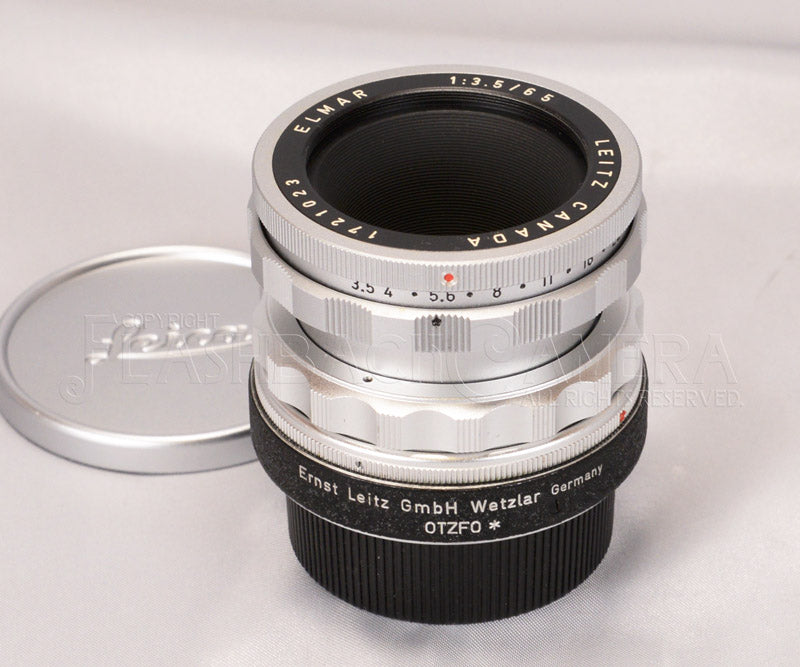 172万台。1960年製。ライツカナダ製エルマー 65mm f3.5と専用ヘリコイドOTZFO*の組み合わせです。*(アスタリスク)マーク付きのOTZFOヘリコイドはごく稀に見かけますが、ほぼプロトタイプの範疇でしょう。OTZFO*は美しい逆ローレット加工、ヘクトール 125mm用OUBIOと同様の三脚座付。このまま販売して欲しかったとも思えるほど、ご立派なつくり。本品はガラス、鏡胴、ヘリコイド、いずれも綺麗な状態です。定評ある描写は言わずもがな、人とはちょっと違ったモノが欲しい貴兄に。珍品。
