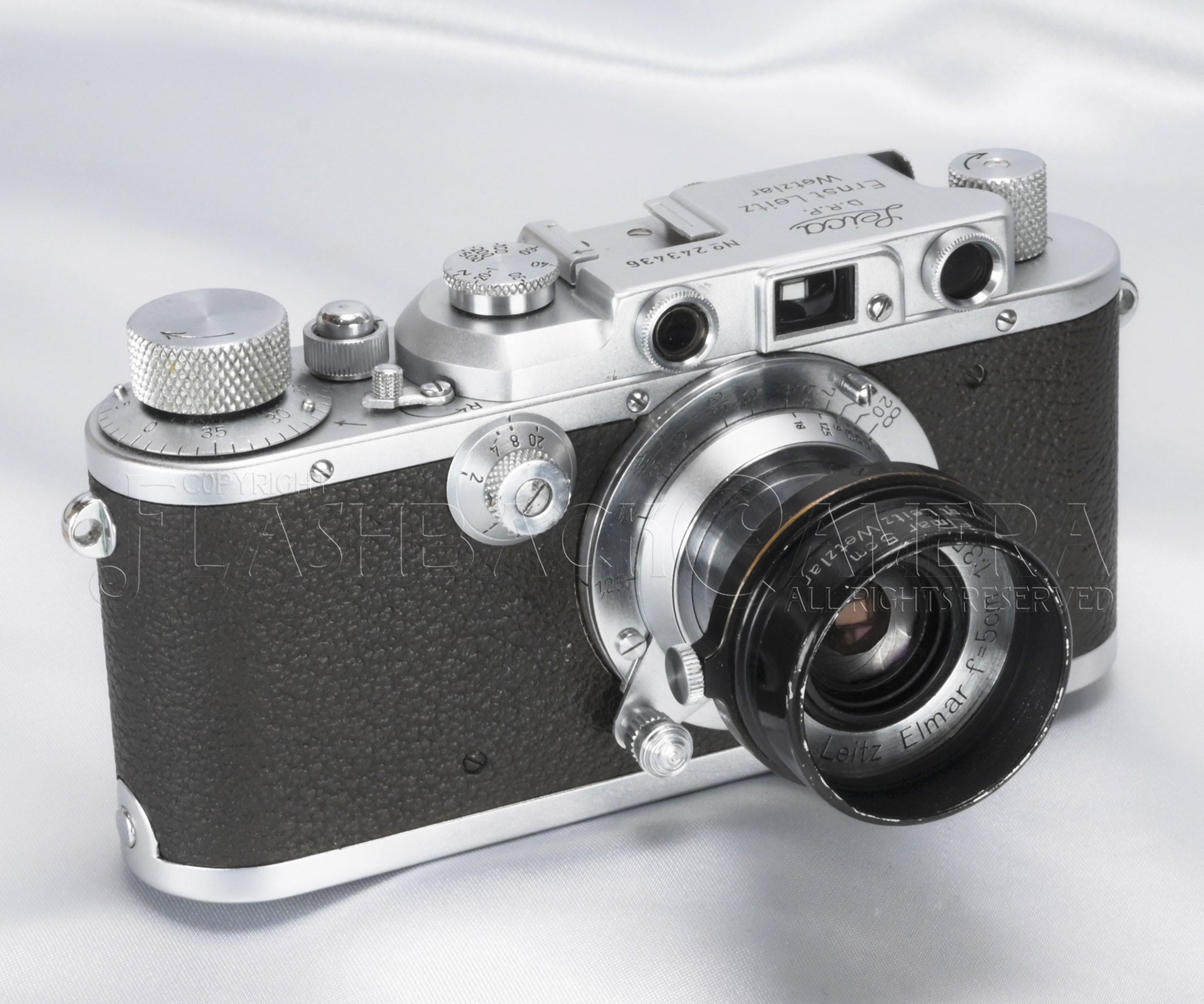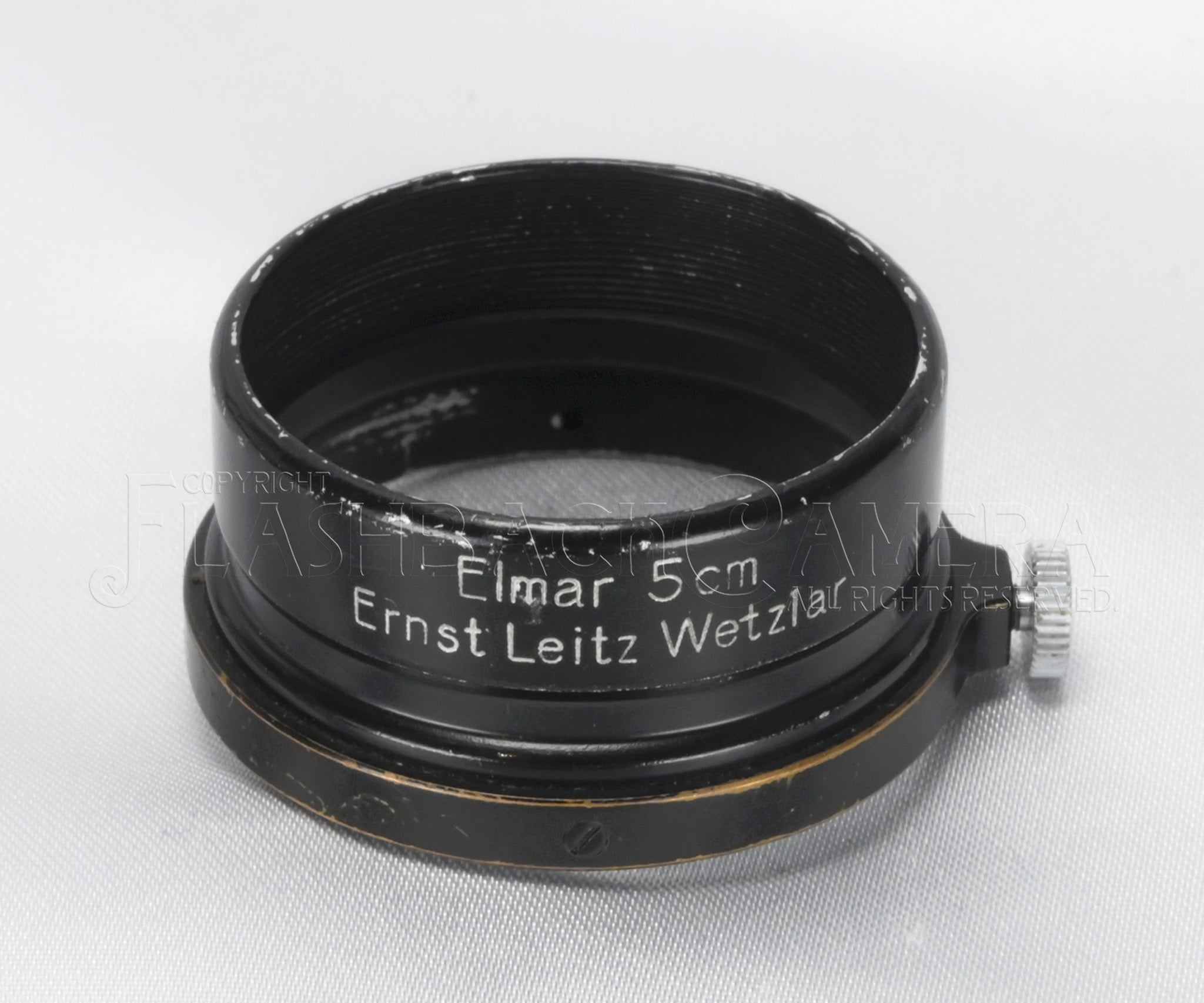 刻印は、フード部に「Elmar 5cm」「Ernst Leitz Wetzlar」と2段で記載されており、その反対側にはGermany刻印があります。文字が多くてありがたいフード。