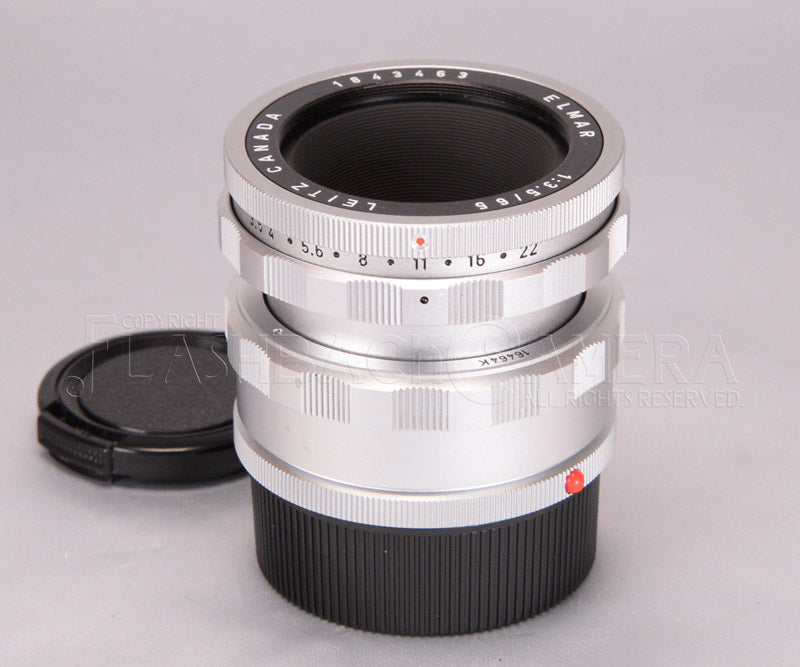 ライツカナダ製エルマー 65mm f3.5 (11062)と、専用ヘリコイド16464K (OTZFO)の組み合わせ。ヴィゾフレックス専用レンズ。184万台。1961年製。最短撮影距離は33cm。フィルター径は41mm。