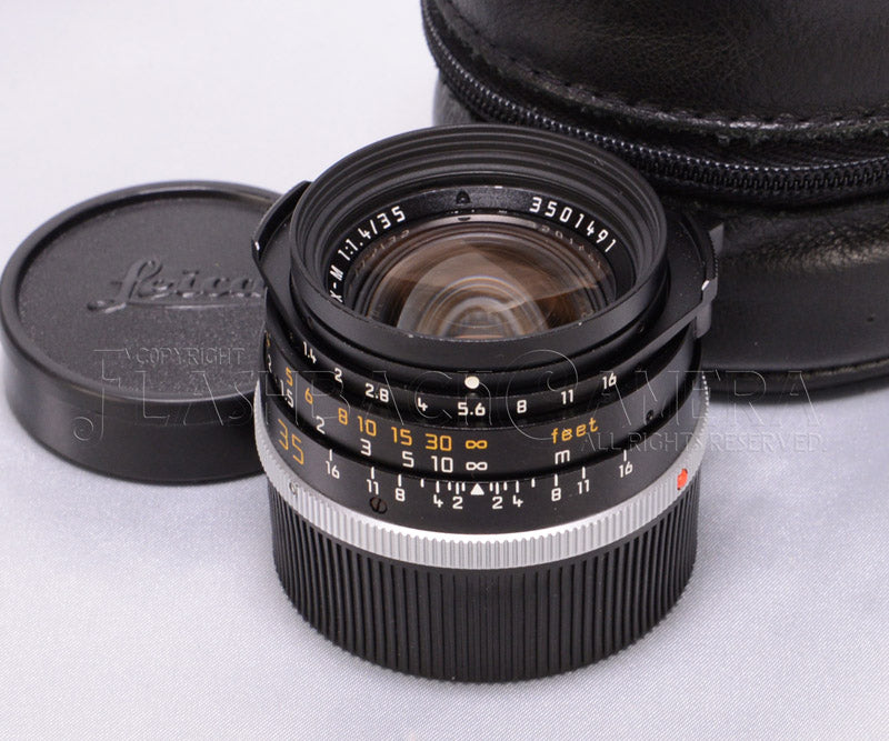 11870。350万台。1989年製。Made in Germanyのズミルックス-M 35ミリ f1.4。球面ズミルックス 35mm 2ndは、1961年から1995年までモデルチェンジされずに製造され続けた長寿命レンズ。現在も非常に根強い人気を誇ります。本品はその最終バージョンです。適合フードは12504。
