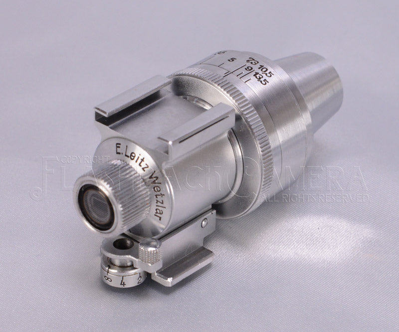 パララックス補正付き逆像ビドムファイダー。 VIDOM。クローム。パララクス補正はメートル表記。35/50/73/90/105/135mmの6種類の焦点距離に対応。ヘクトール使いに嬉しい73mm枠内蔵です。