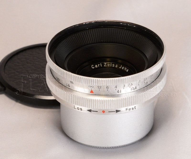 戦後Carl Zeiss Jena製、コンタックス用のトポゴン 25ミリ。ハイペルゴンのメニスカスレンズ設計を基礎とした対称構造の4群4枚構成。距離計には非連動ですが、絞っての目測撮影も楽しい一本。距離リングの表記はメートルです。