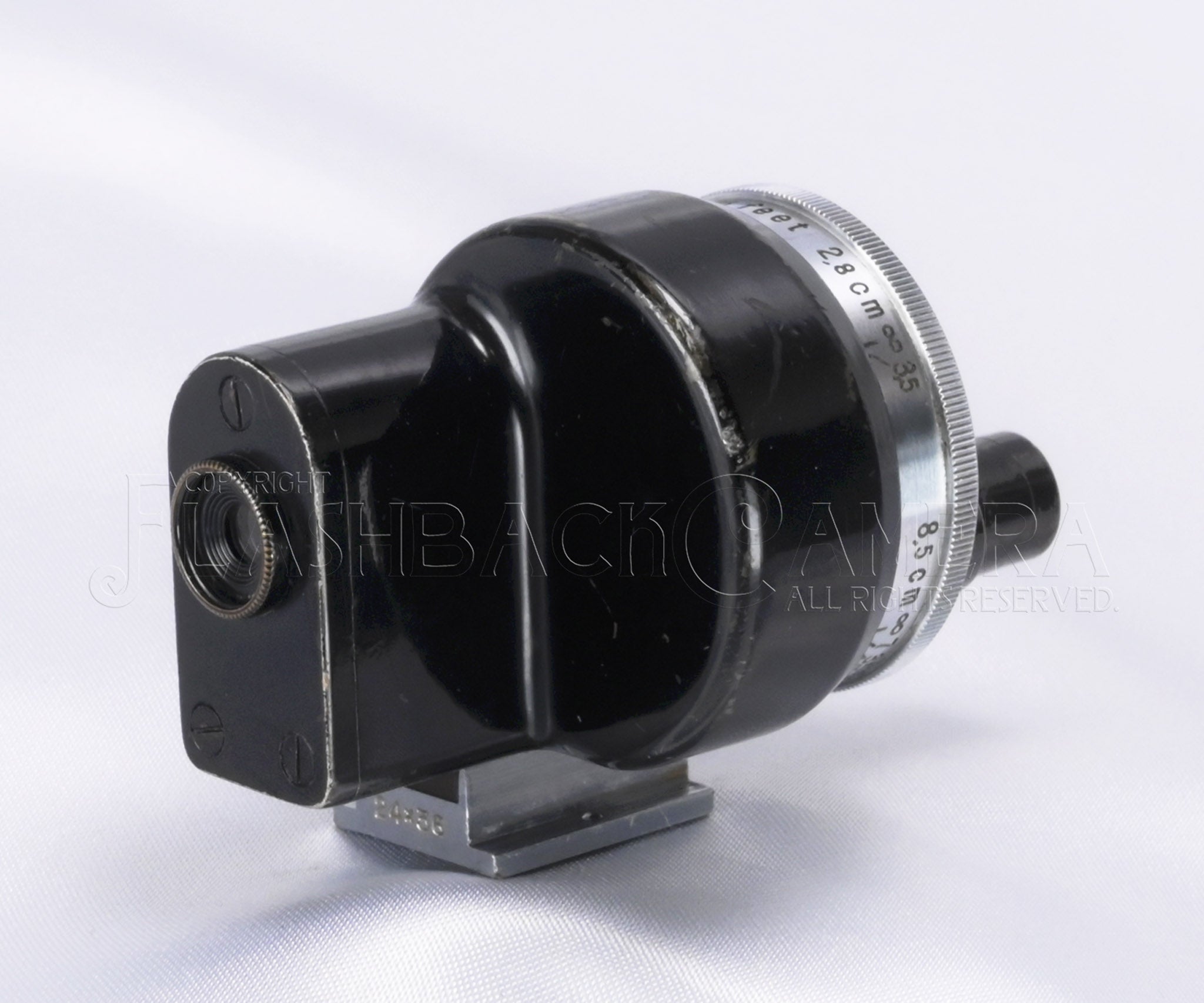 ファインダー本体が接眼方向から見て右側にせり出しているため、ライカに装着するとシャッターダイヤル上にファインダーが重なり、シャッタースピードが読めなくなります。ご注意ください。