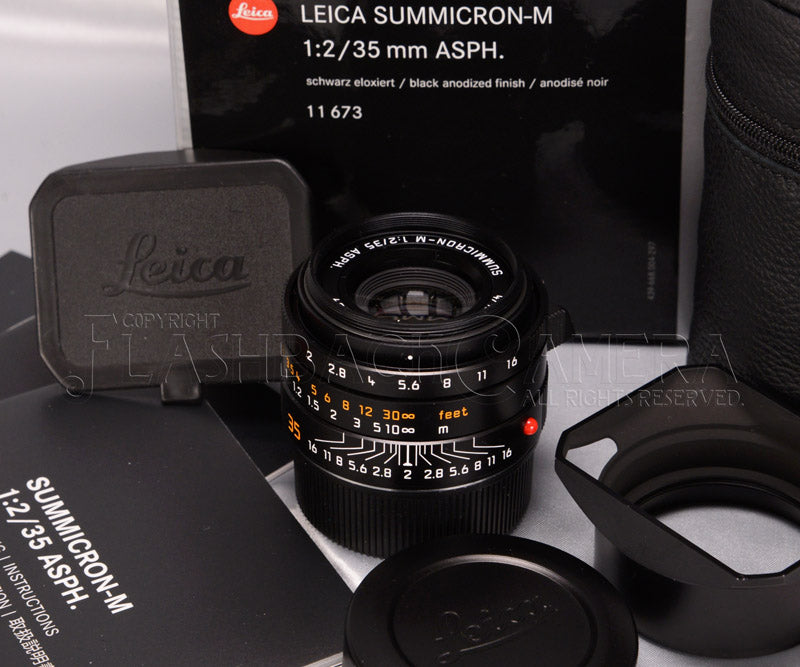11673。ズミクロン-M 35ミリ f2 ASPH.、現行品です。ブラック。5群7枚構成。最短撮影距離は0.7m。E39。ねじ込み式の角形フード。現行のM型ライカにベストマッチなレンズの一つでしょう。伝統のズミクロンの系譜を引き継ぐ準広角レンズ。