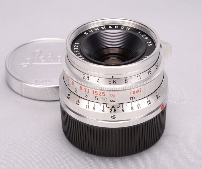 SIMOM-M。後のコードは11306。221万台、1966年製の極上ニッパチズマロン。ドイツ製。前モデルのズマロン f3.5と同じ4群6枚構成ながら、新種ガラスの採用で明るく生まれ変わりました。カラーの再現性や解像度もパワーアップ。絞り開放からほどよい周辺落ちを伴ったシャープな描写で、雰囲気のある作画が楽しめます。無限遠ストッパーの形状も変わり、その姿は同年に登場したズミクロン 35mm8枚玉と瓜二つ。