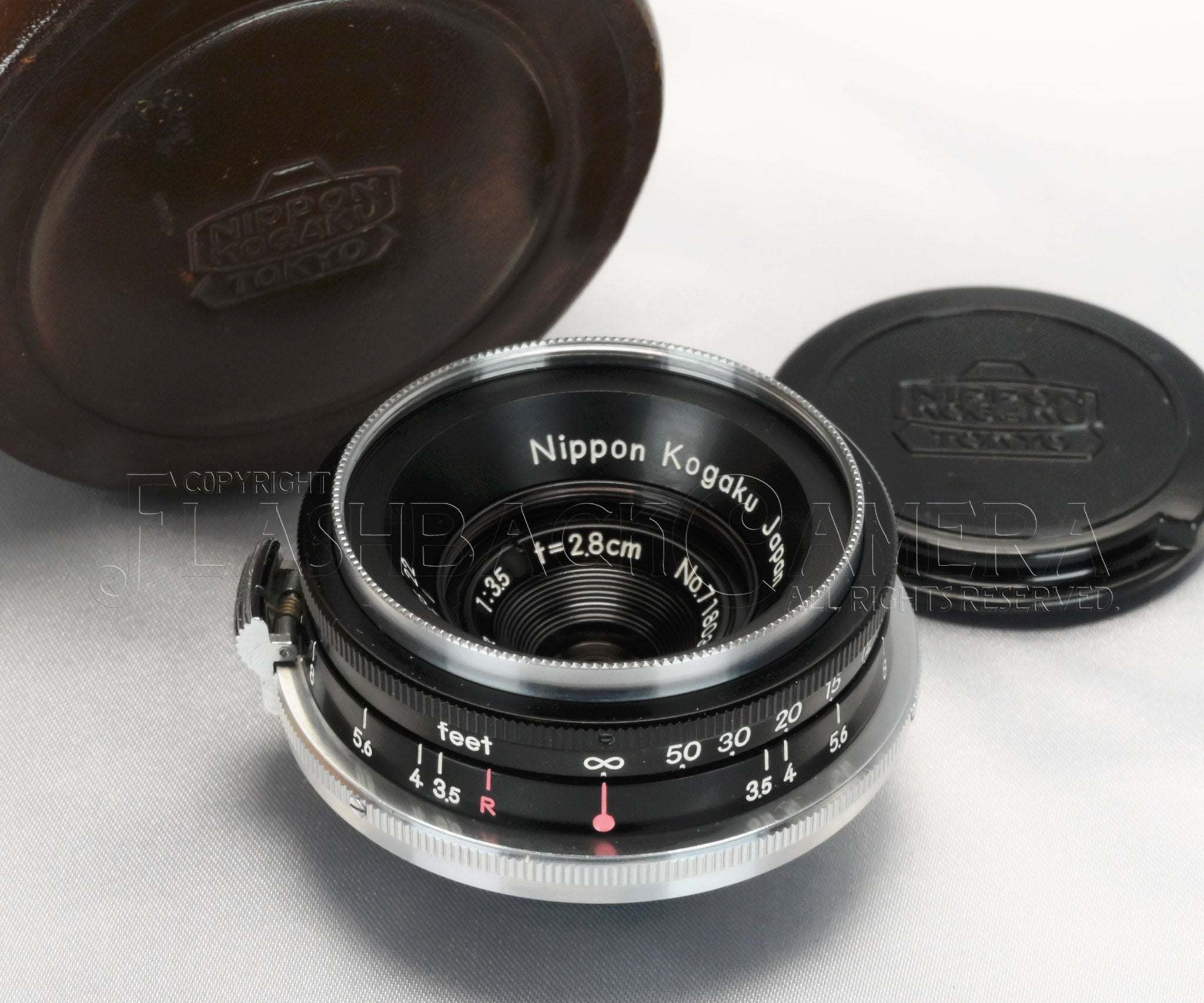 W-ニッコール 28mm f3.5。日本光学のレンジファインダー機、ニコンSシリーズ用の広角レンズ。ライカ Lマウント用を含め、約1万本が作られたと言われています。本品は、軽量なアルミ製鏡胴にブラックペイント仕上げの後期型。