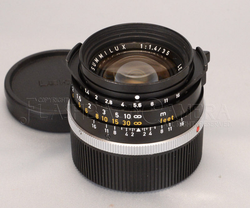 11870。255万台。1972年、カナダ製のズミルックス 35mm f1.4。第2世代。ライツを代表する大口径広角レンズで、30年以上に渡って生産されたロングセラー・モデル。純正フードは12504。