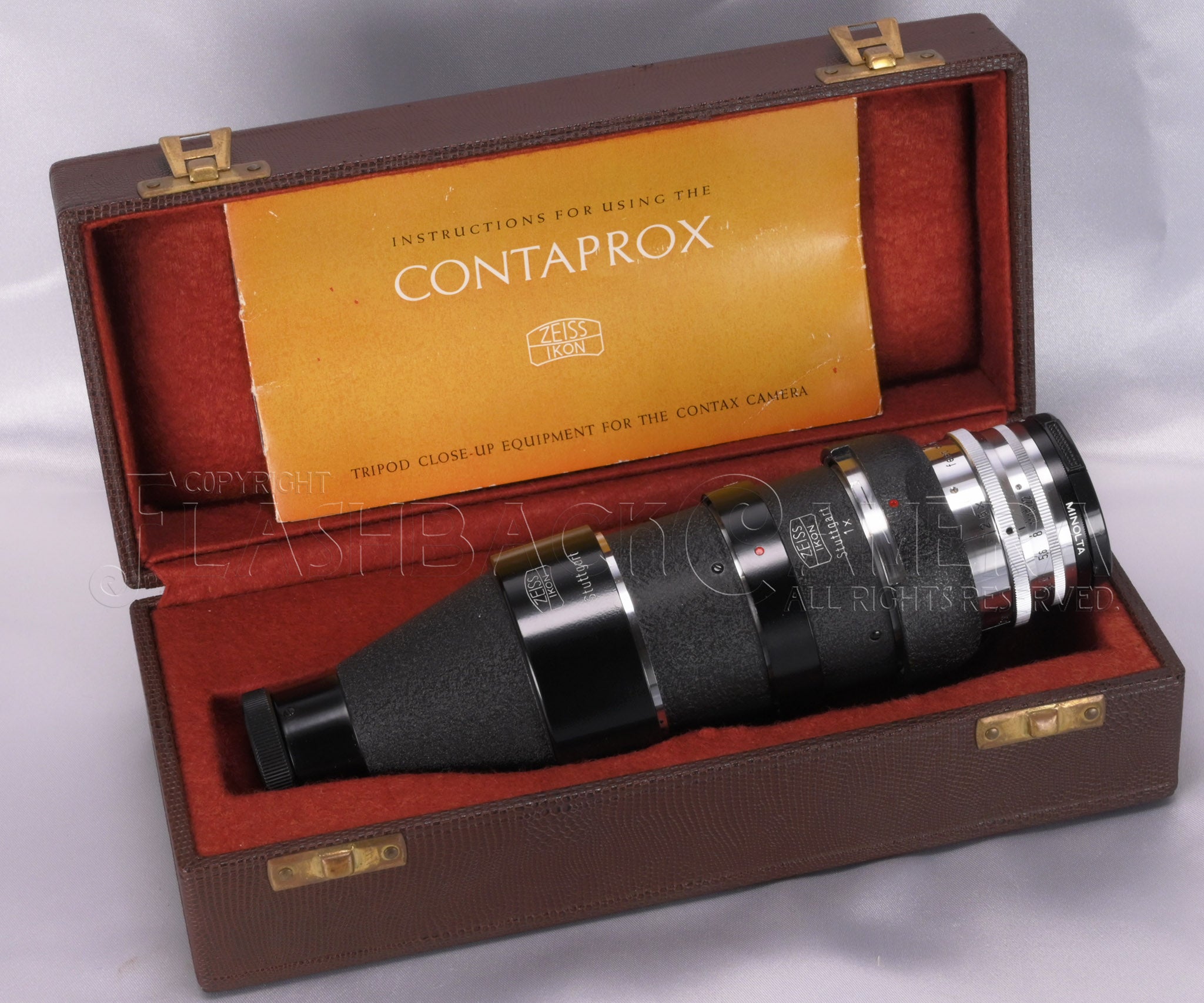 5522/13。コンタックス IIa / IIIa用の接写アクセサリー、コンタプロックス I型。戦後品。撮影レンズはCarl Zeiss製テッサー 50mm f3.5。調整ヘッド、中間リング、ピントグラスのセットとなっています。