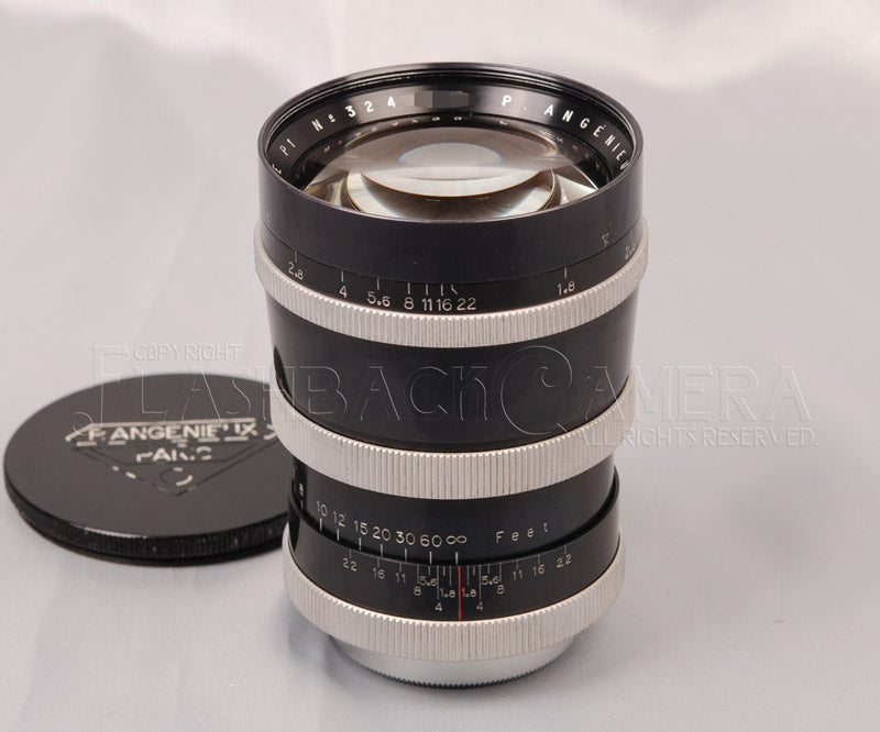 アンジェニュー 90mm f1.8、ライカ・スクリューマウント。Type P1前期型。エルノスター型の4群5枚構成。1953年製。距離表記はfeet。