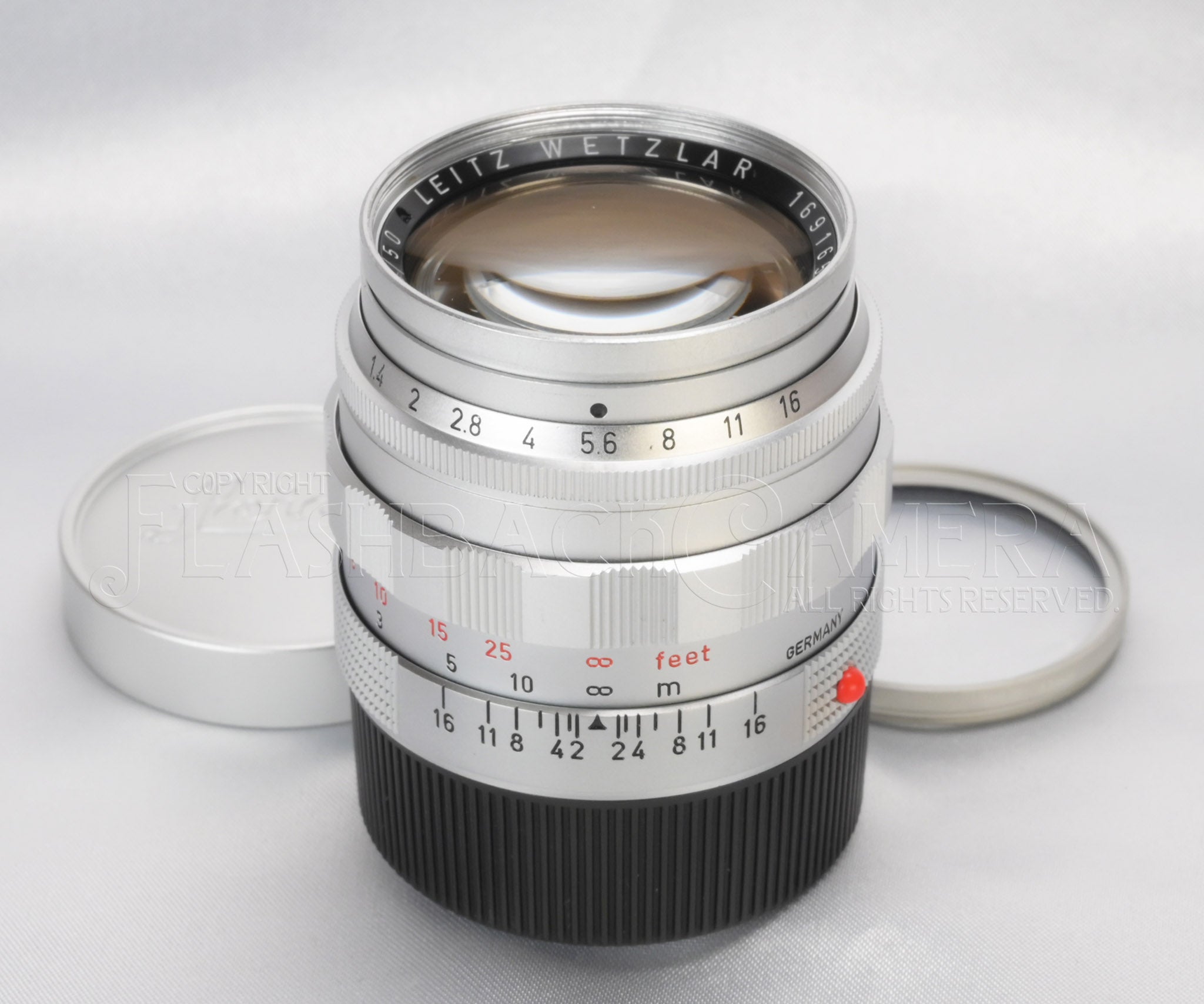 初代ズミルックス 50mm f1.4の初期玉、美しいクローム仕上げ。通称貴婦人。製造番号は169万台。1959年製。ライツの製品コードはSOOME。