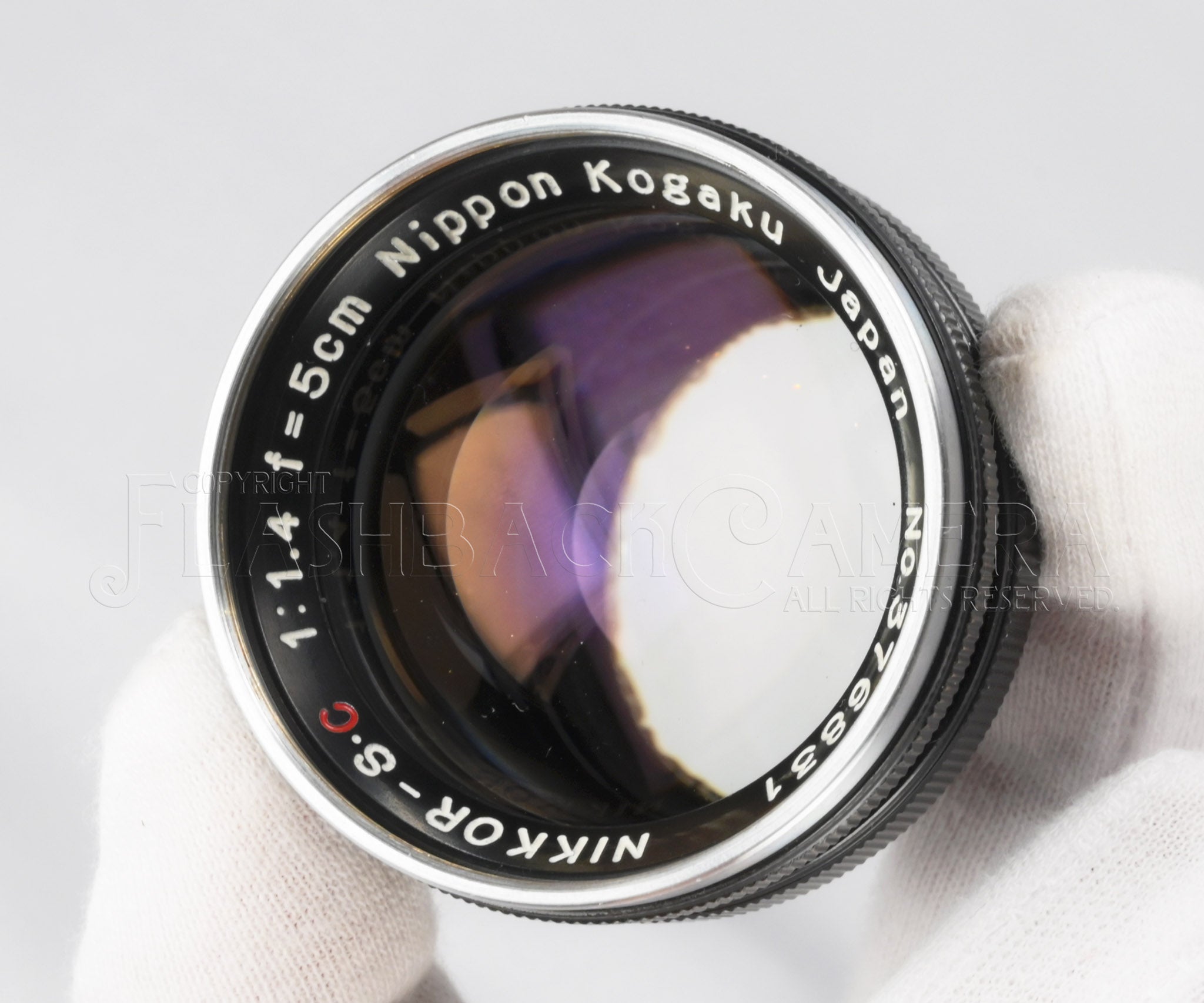 ニッコール-S 50mm f1.4 後期型。ニコンSマウント。黒鏡胴。製造番号は37万台。