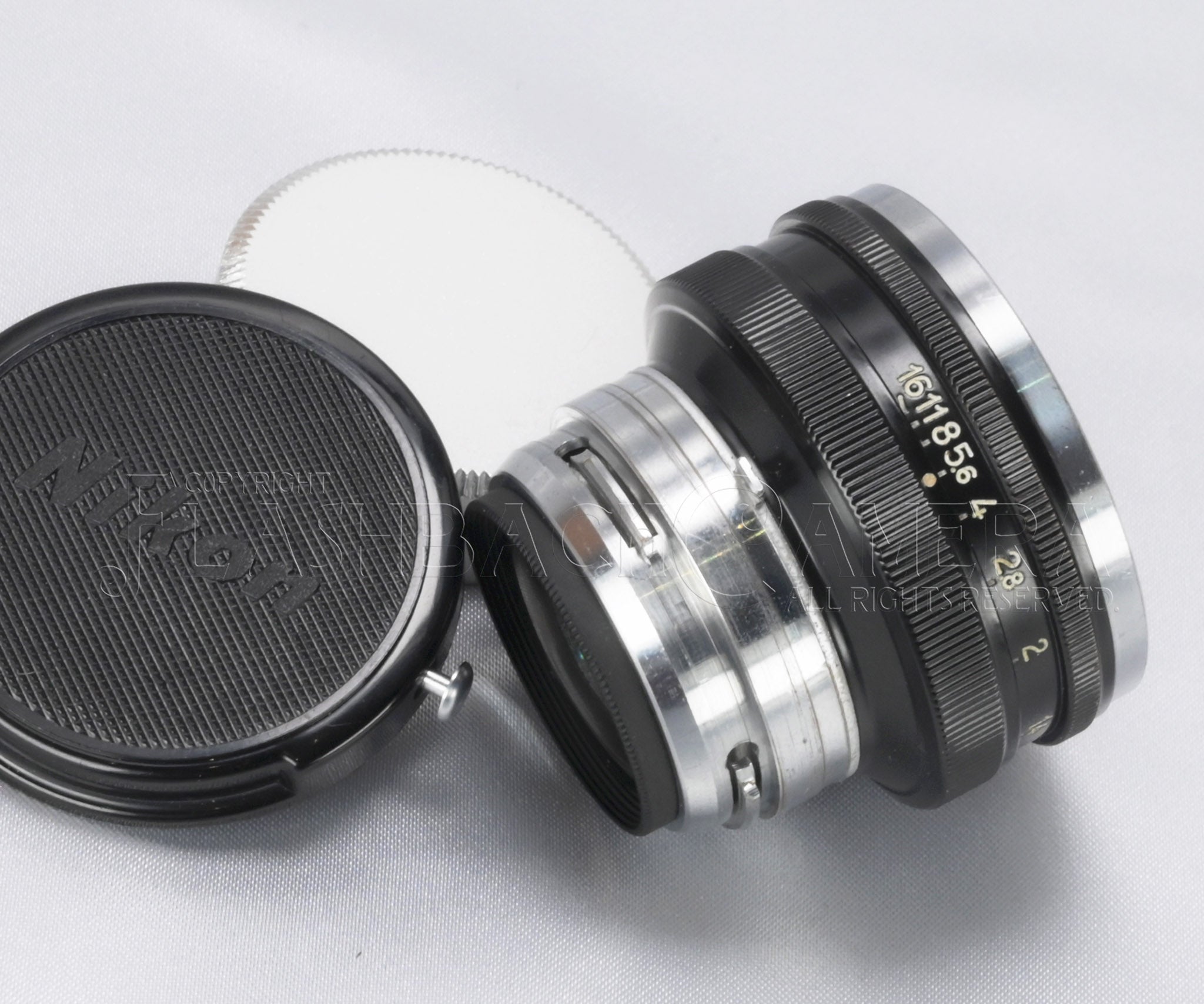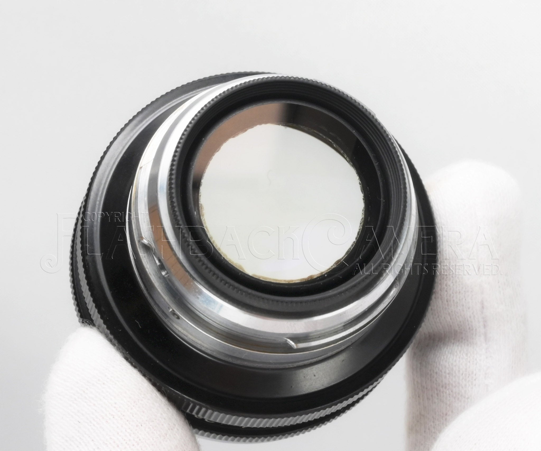 ガラスにはこのレンズの持病とも言える、後群のエッジに沿っての軽微なバルサム切れが見られますが、実写にはまず影響ありません。他、拭きキズやクモリも見られず、スカッと抜けた綺麗なガラスです。本来の描写がお楽しみいただけるでしょう。