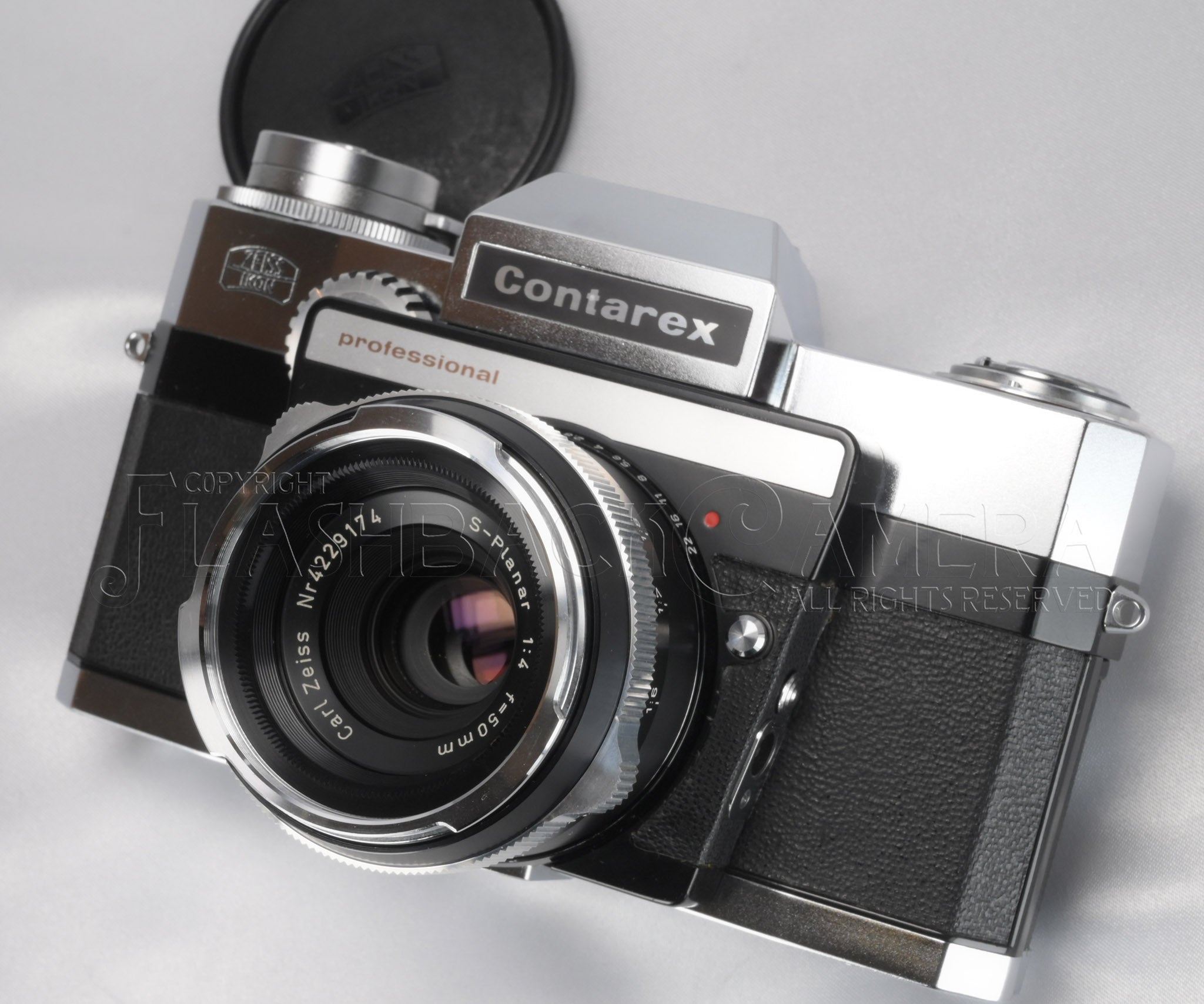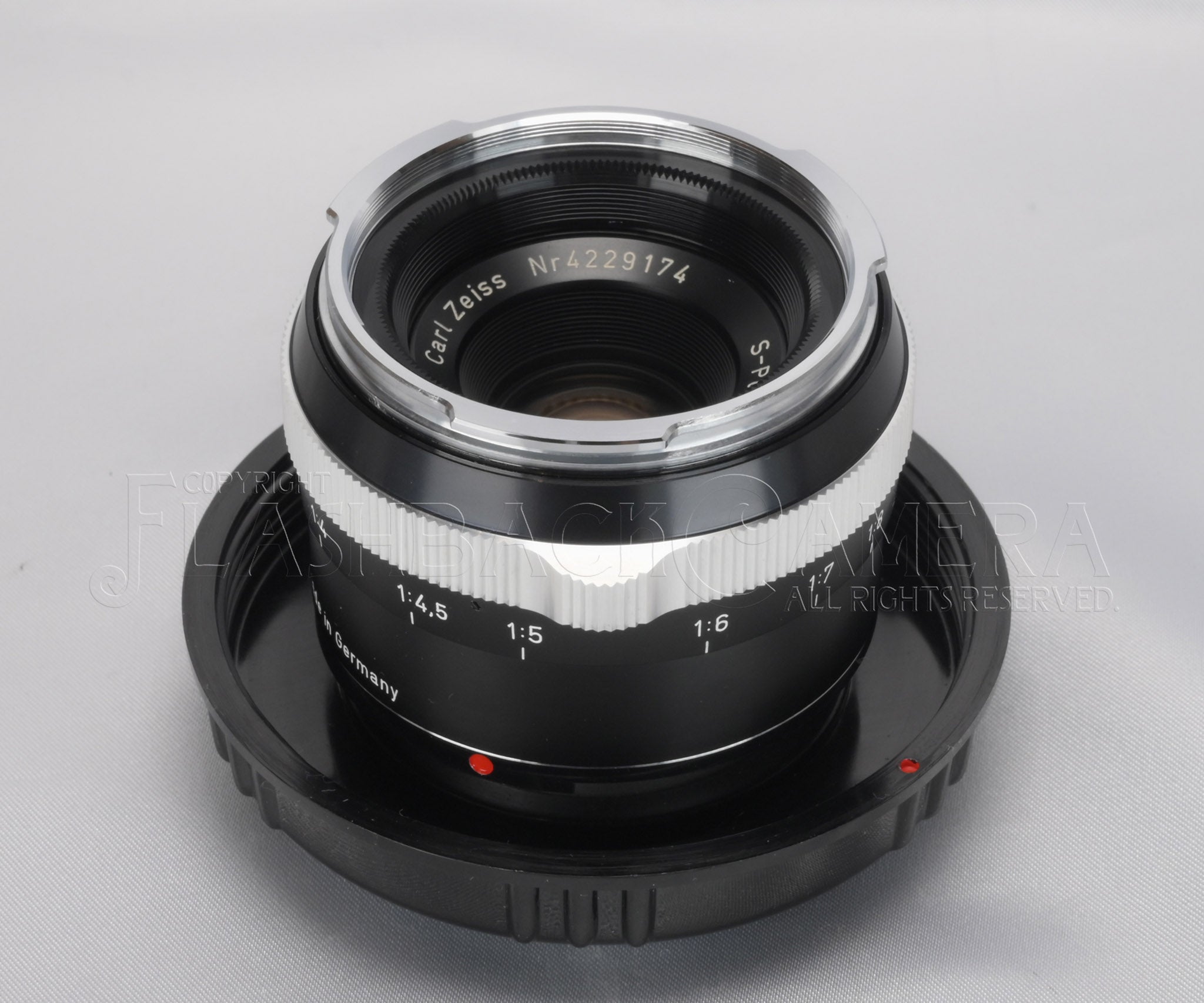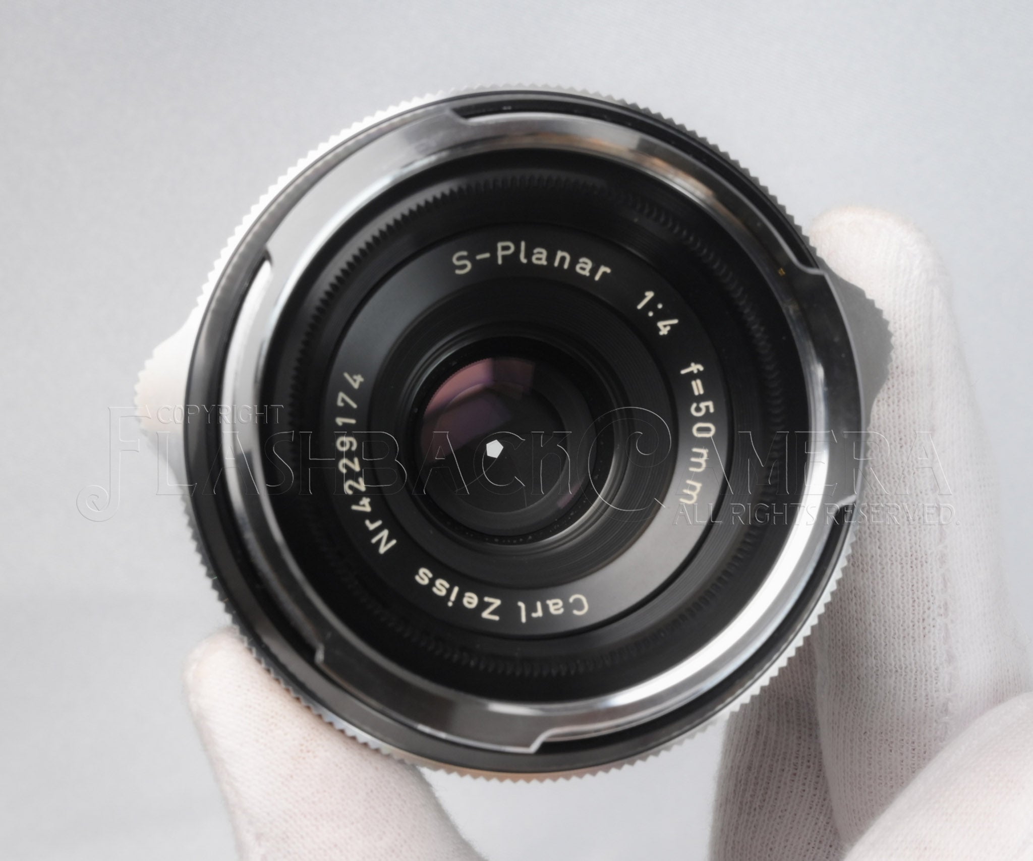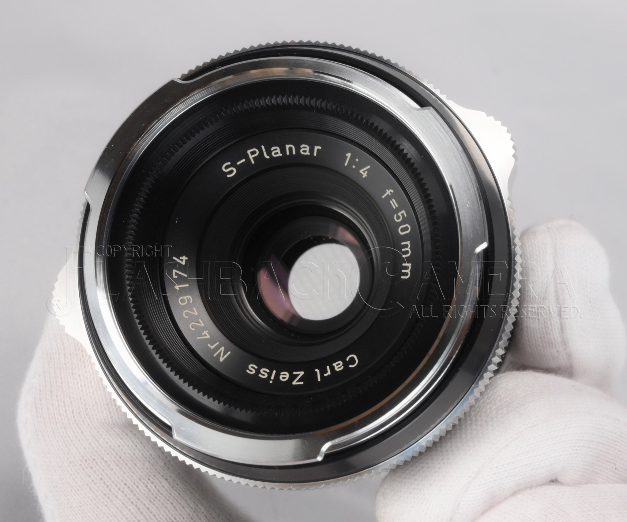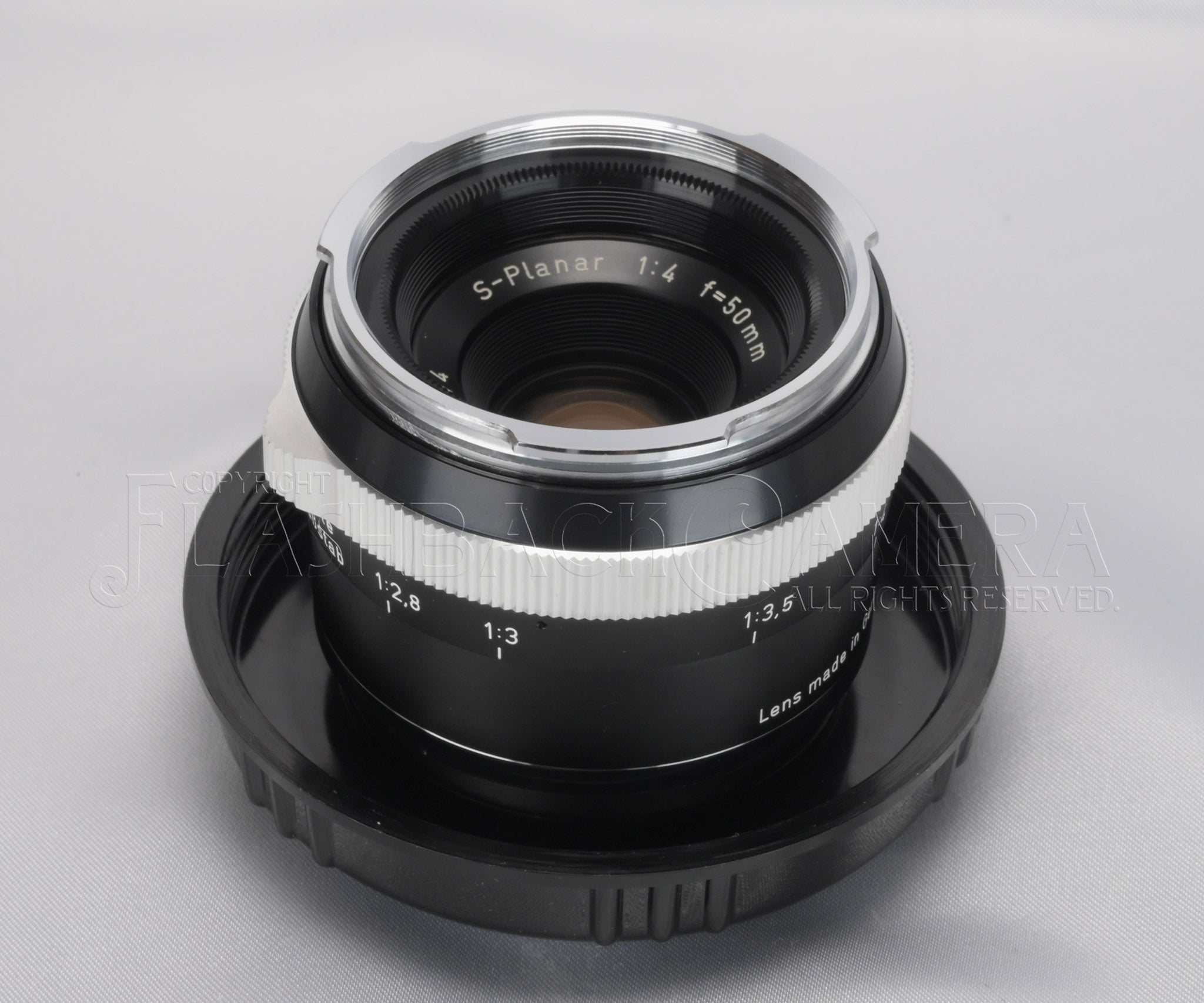 コンタレックス用近接撮影専用レンズ、S-プラナー 50mm f4。接写時の描写性能に重点をおいた設計の特殊レンズで、レンズ先端から約15〜70cmの距離で撮影が可能です。4群6枚構成。