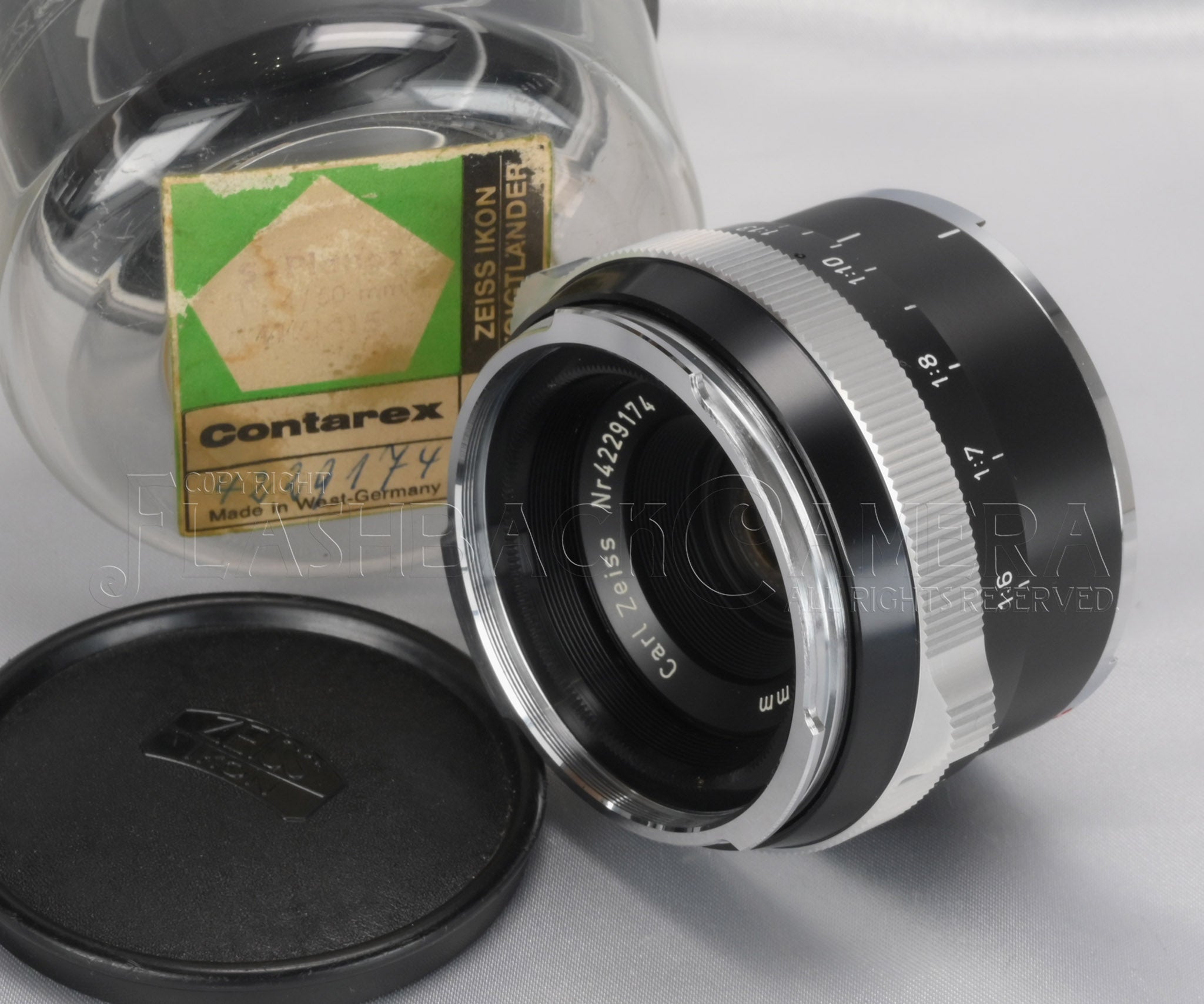 1963〜66年にわずか400本のみが製造されました。黒鏡胴の本品は1966年の製造。1963年に白鏡胴200本、1966年に黒鏡胴200本という記録が、ツァイス電話帳のオーバーコッヘン版に記されています。重量は実測で256g。珍品。