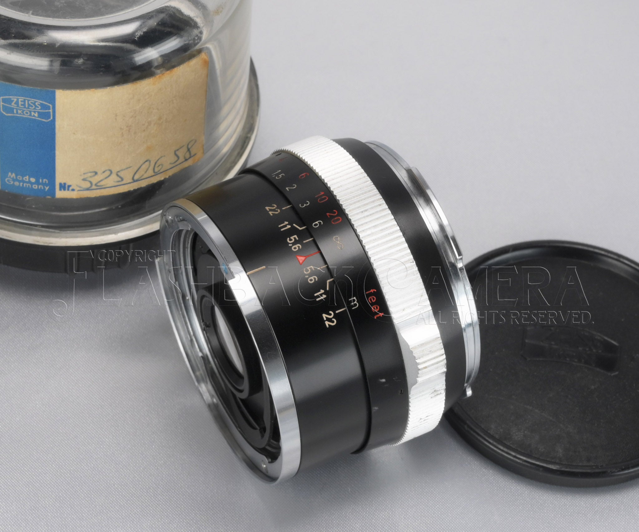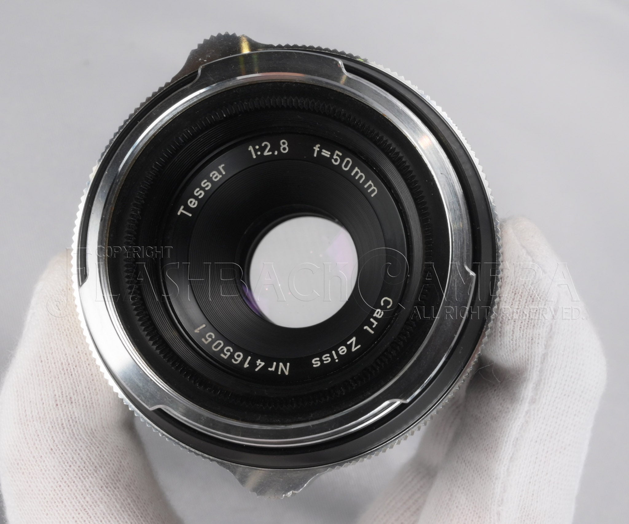 コンタレックス用の普及版標準レンズ、テッサー 50mm f2.8。黒鏡胴仕上げ。1960年に登場し、1969年まで販売されました。生産本数は5,978本。製造はカール・ツァイス・オーバーコッヘン。製造番号は416万台、1965年製。