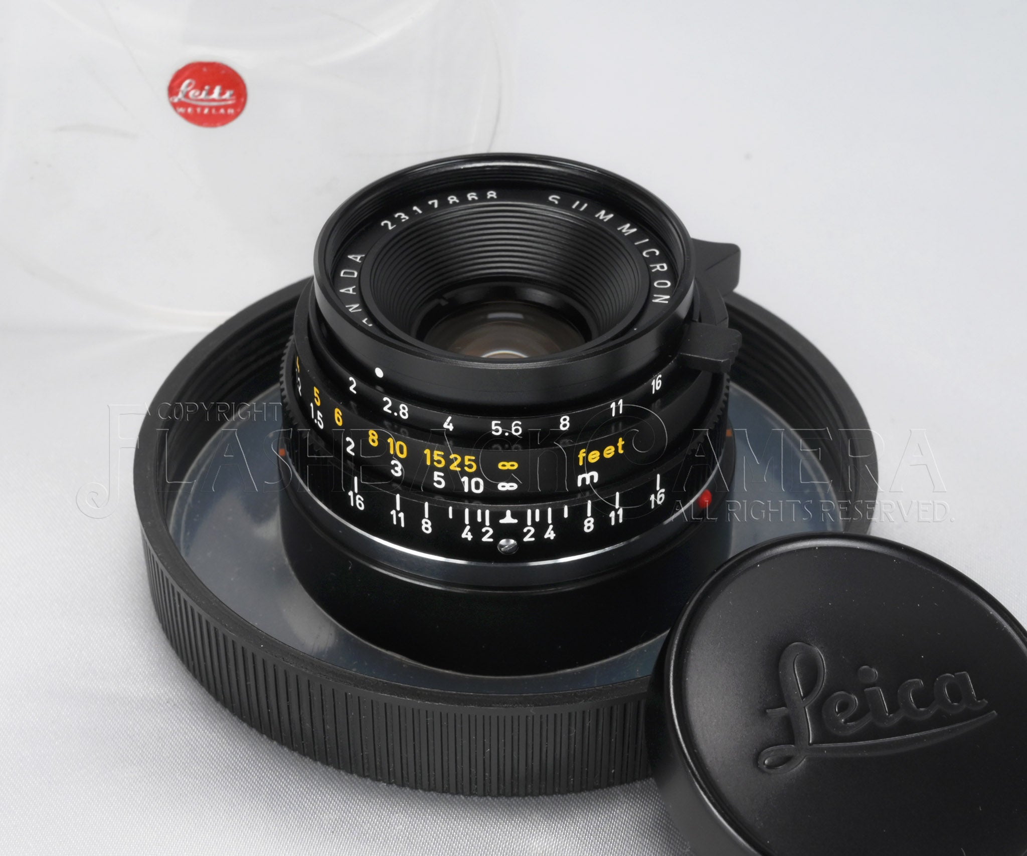 ズミクロン 35mm f2の第2世代、6枚玉、通称ツノ付。製造番号231万台の1969年製。ライツの製品コードは11309。カナダ製。フィルター径はE39。