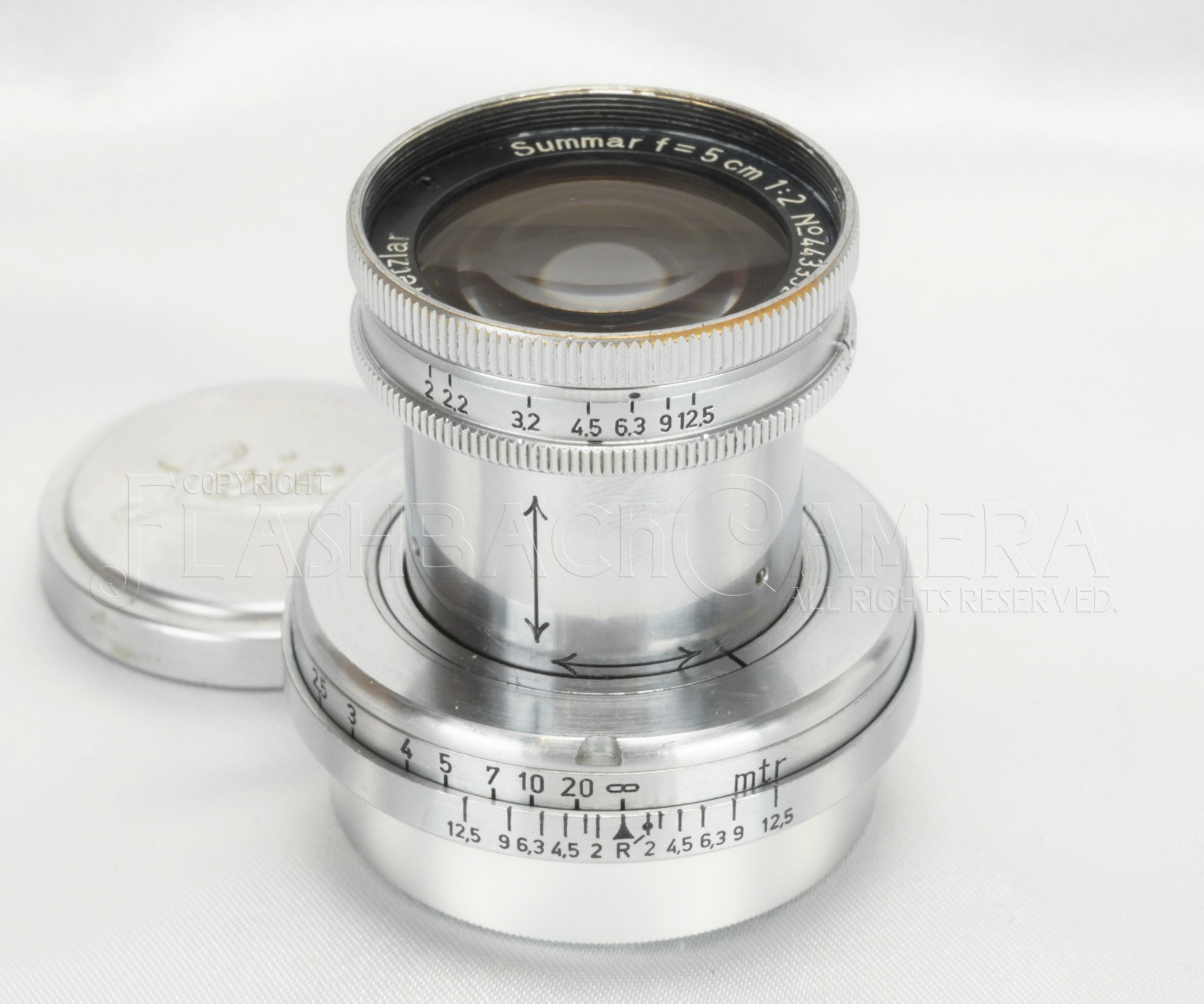 ズマール 50mm f2。製造番号は44万台、1938年製。ライツのコードはSUMUS。六角絞り、本品は後年ライツで施されたと思われるコーティング付。絞りは大陸表記(f2、2.2、3.2〜)。ヘリコイドの距離表記はmeter。