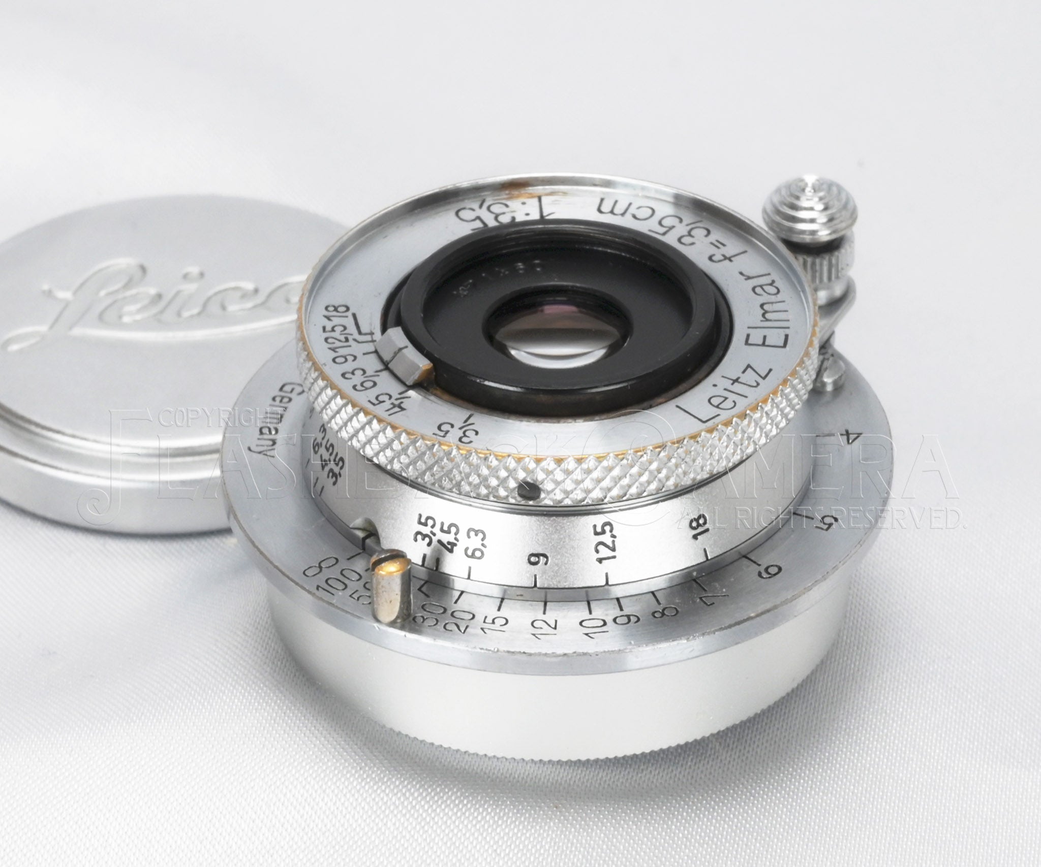 戦前エルマー 35mm f3.5。製品コードはEKURZCHROM。製造番号47万台、1938年製。フィート表記。3群4枚構成。