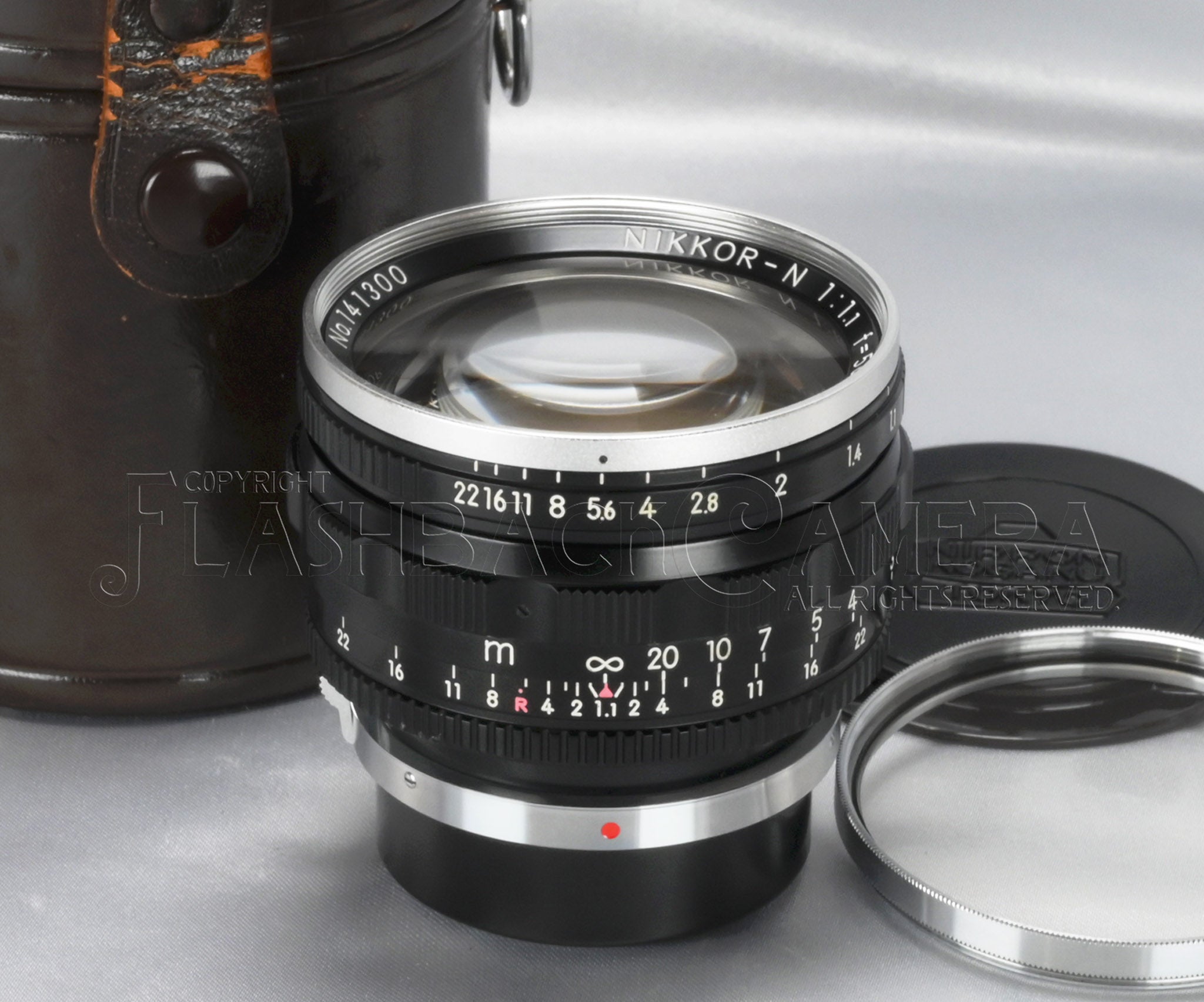 ニッコール-N 50mm f1.1。外爪。1956年に発売された、ニコン Sシリーズ用の超大口径レンズ。6群9枚構成。フィルターサイズは62mm。距離表記はmeter。