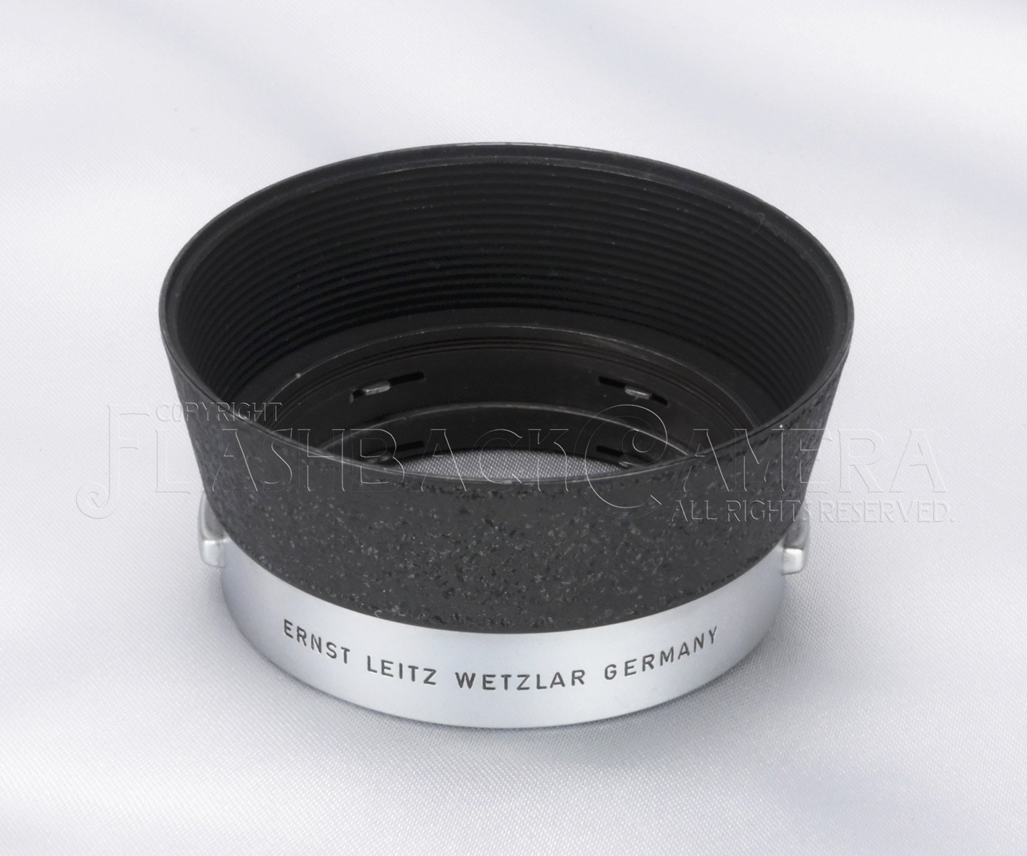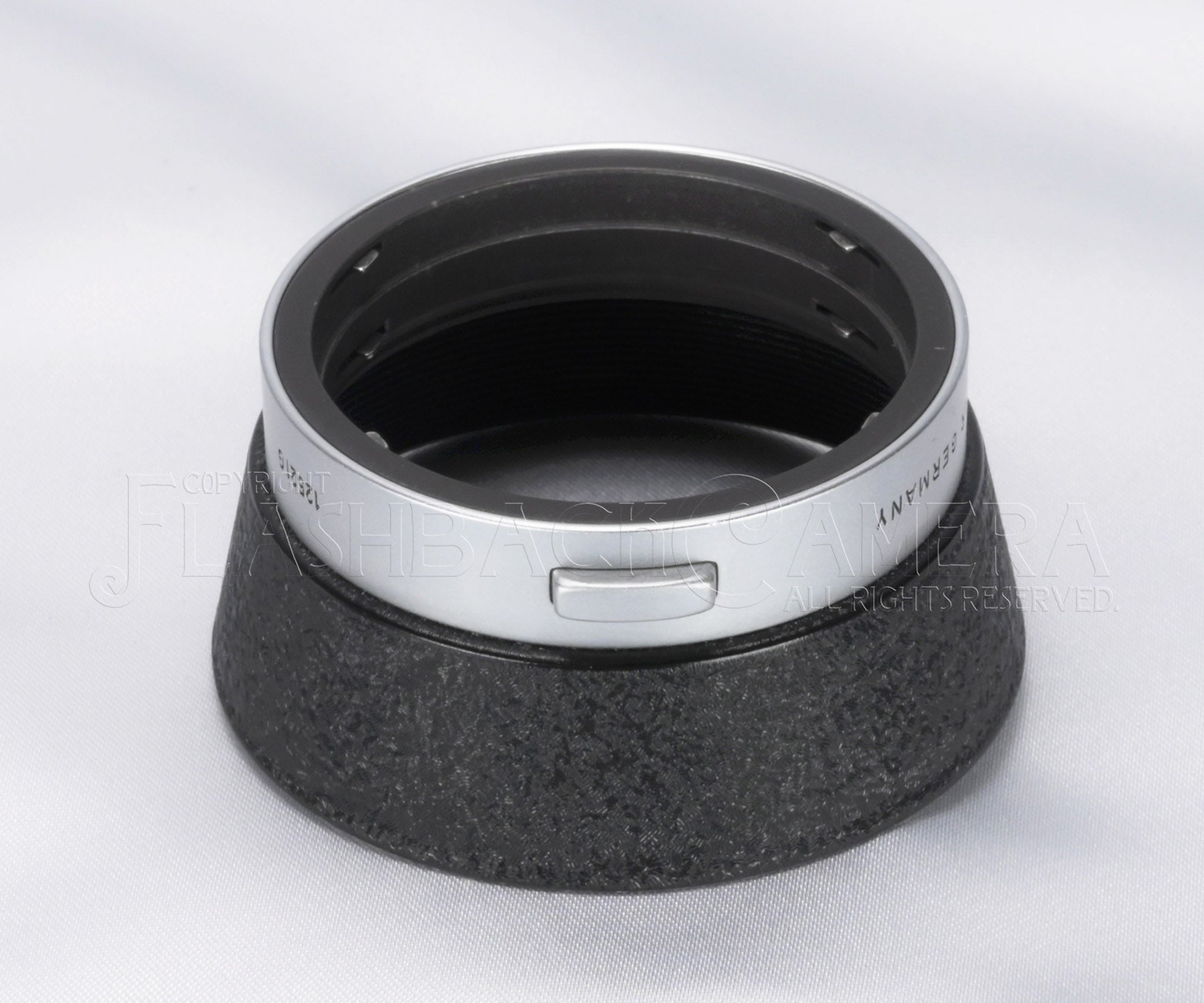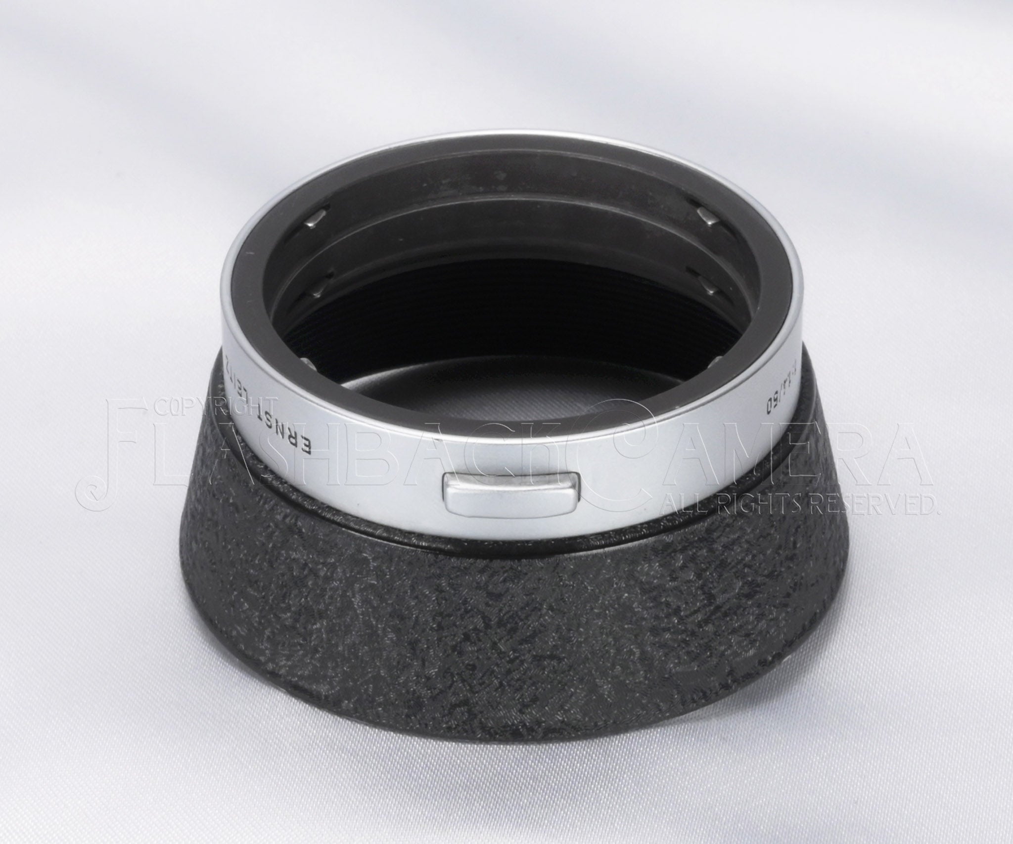 結晶塗装、梨地クロームメッキの手の込んだ仕上げで、ライツ黄金期のクオリティが感じられる逸品。エレガントなデザインの貴婦人にドンピシャなフード。ダブルフック。レンズに逆さまに装着することでコンパクトに収納できます。