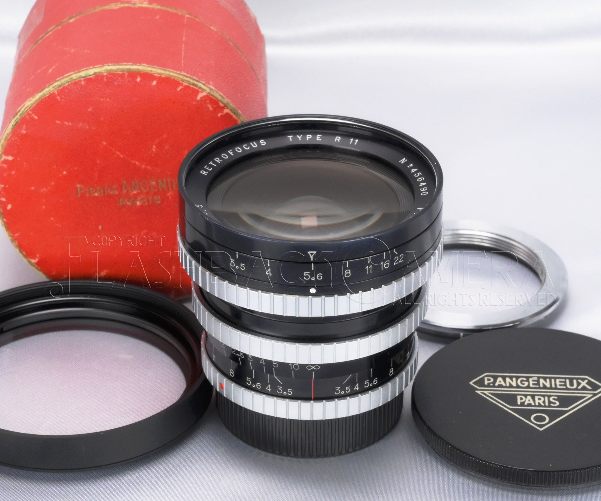 純正前キャップ、レクタフレックス用純正アダプター、宮崎光学製レンズフード、フィルター、元箱が付属します。コレクションにもどうぞ。