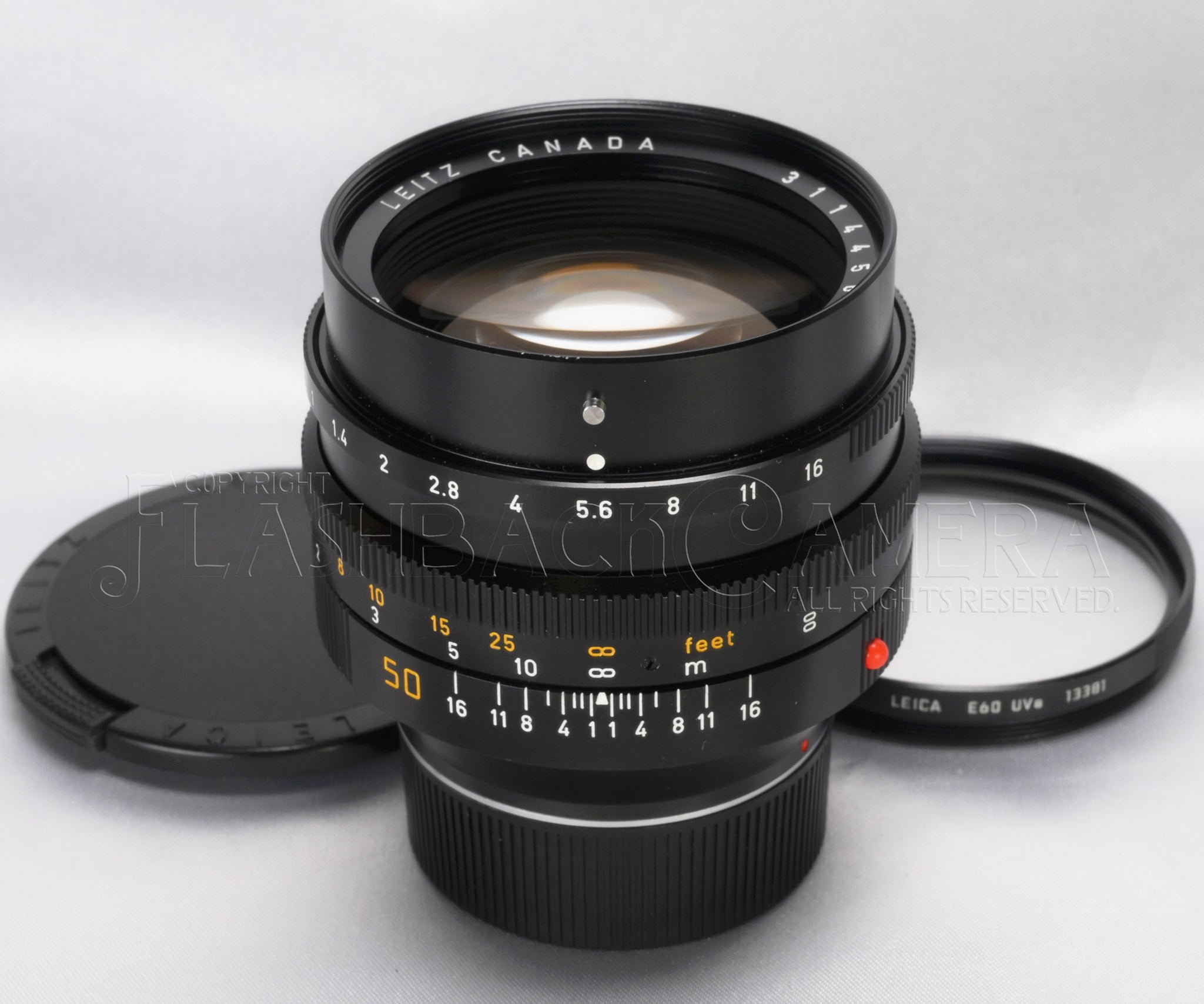 ノクティルックス50mmの第3世代、フード別体型のE60前期型。E58に続くモデルです。ライツの製品コードは11821。製造番号は311万台、1981年、カナダライツ製。適合フードは12539。