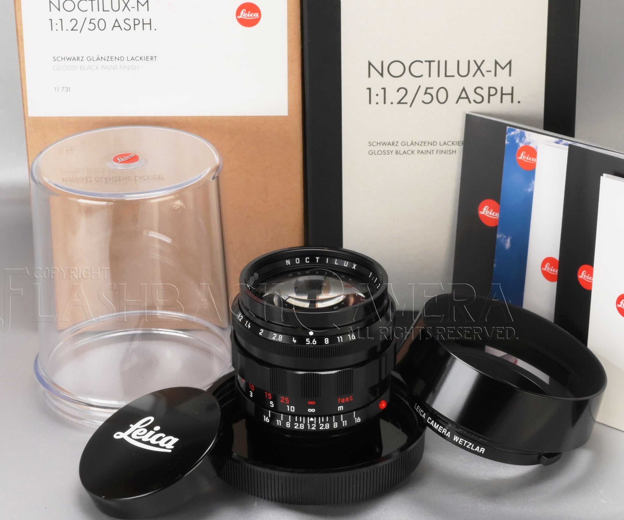 復刻版ノクティルクス-M 50mm f1.2 のブラックペイント・バージョン、「グロッシーブラック」。ライカM11グロッシーブラックと共に登場したモデル。ライカの製品コードは11731。