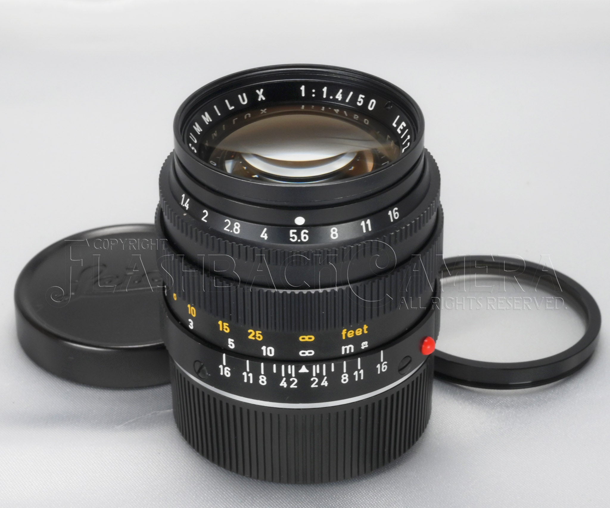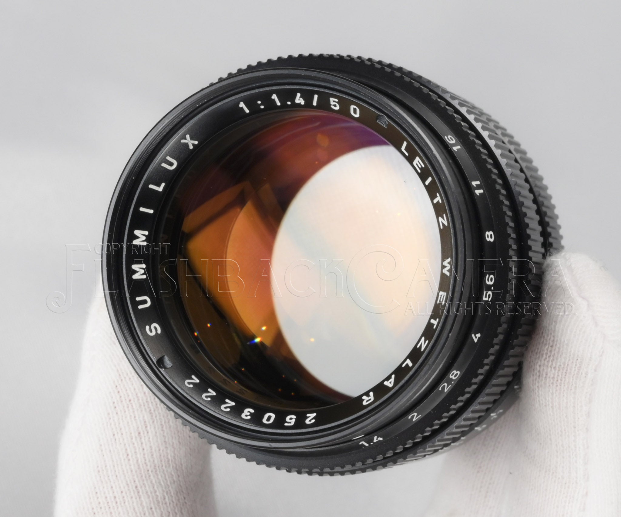 第2世代のズミルクス 50mm f1.4。ブラッククローム仕上げ。ライツの製品コードは11114。250万台、1972年製造。5群7枚構成。
