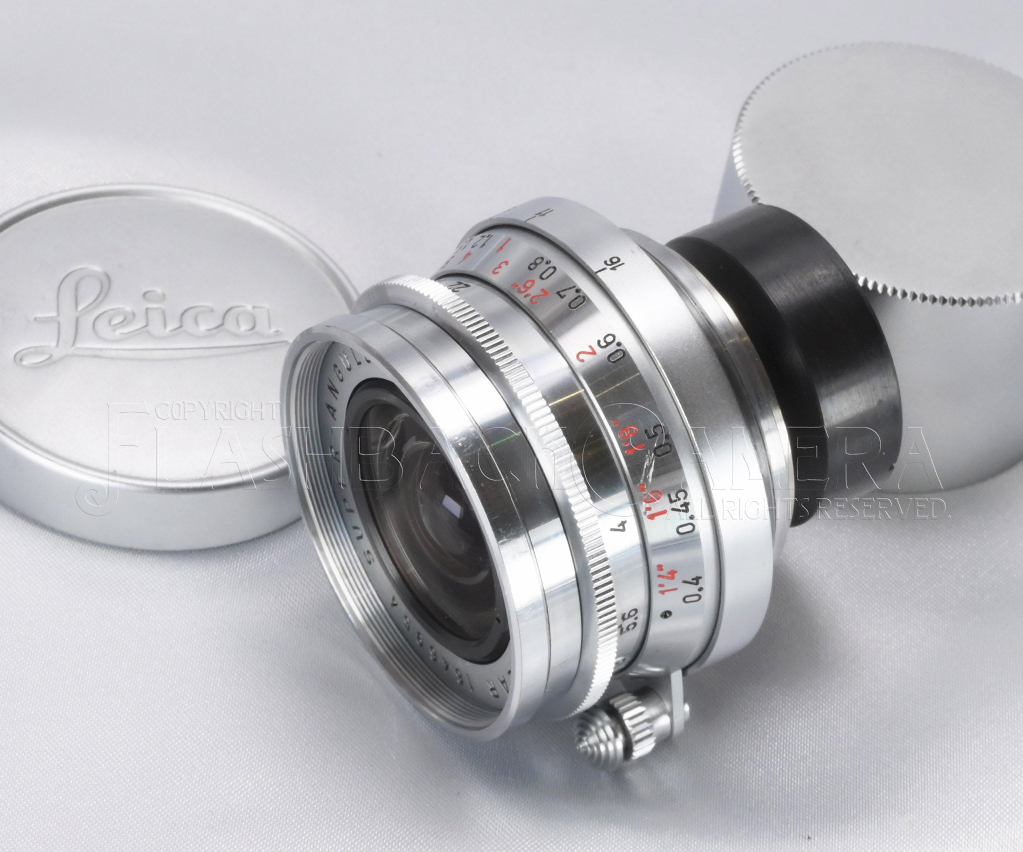 スーパー・アンギュロン 21mm f4、オリジナル・ライカスクリューマウント。オリジナル Lマウントは製造本数1462本とやや稀少です。ライツの製品コードはSUOON、後に11002K。
