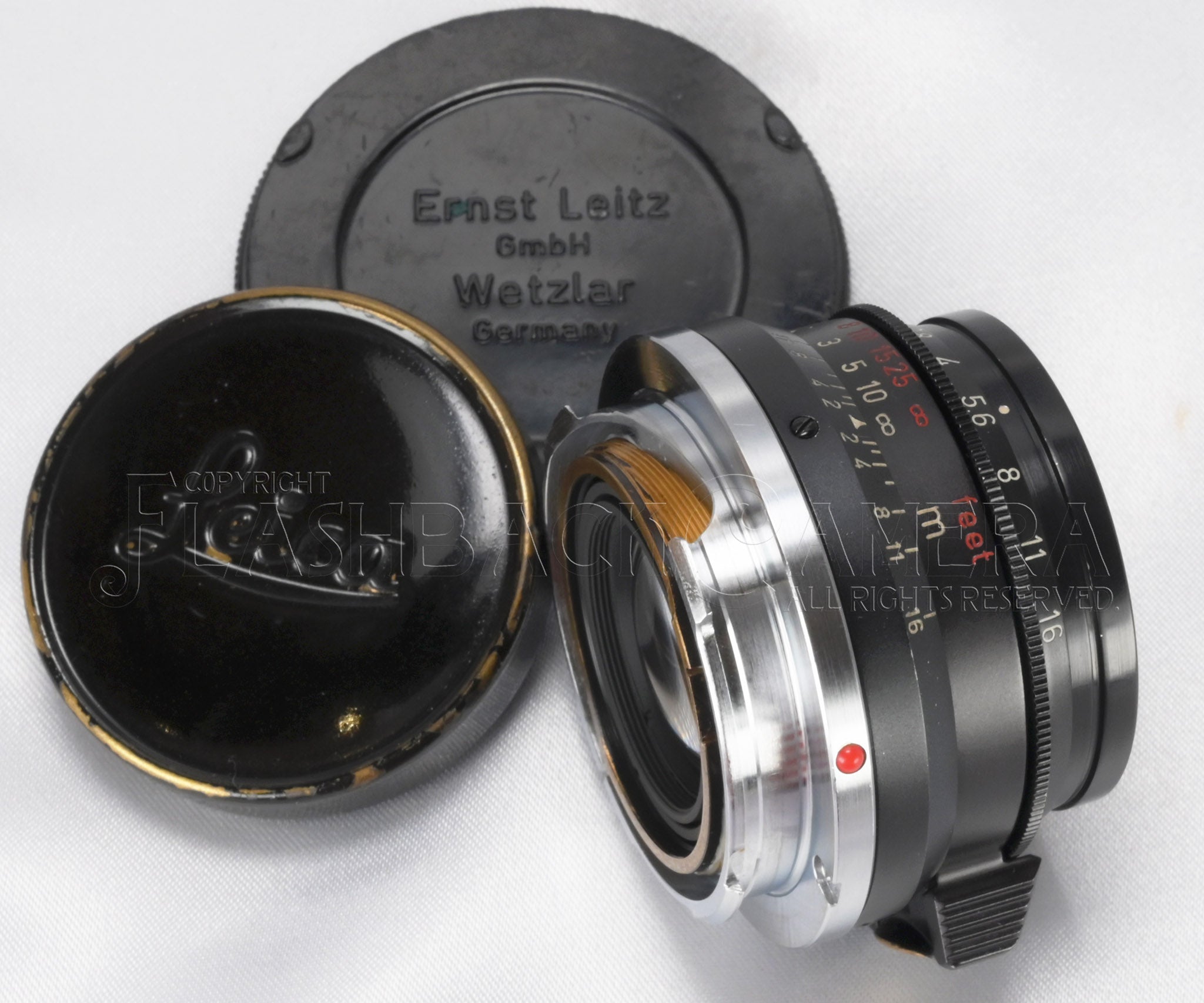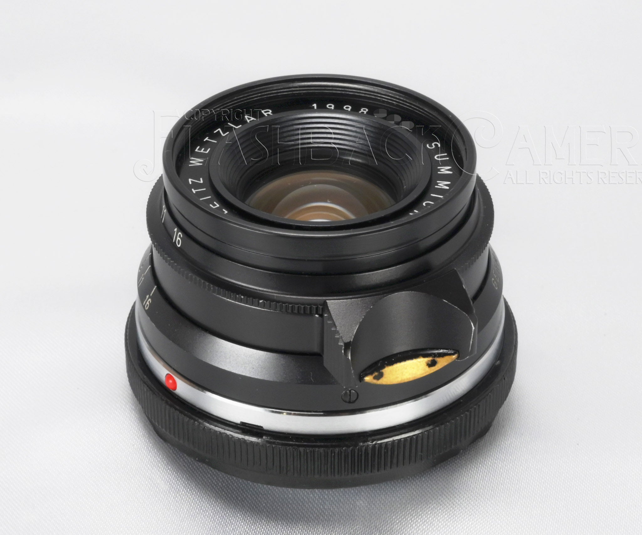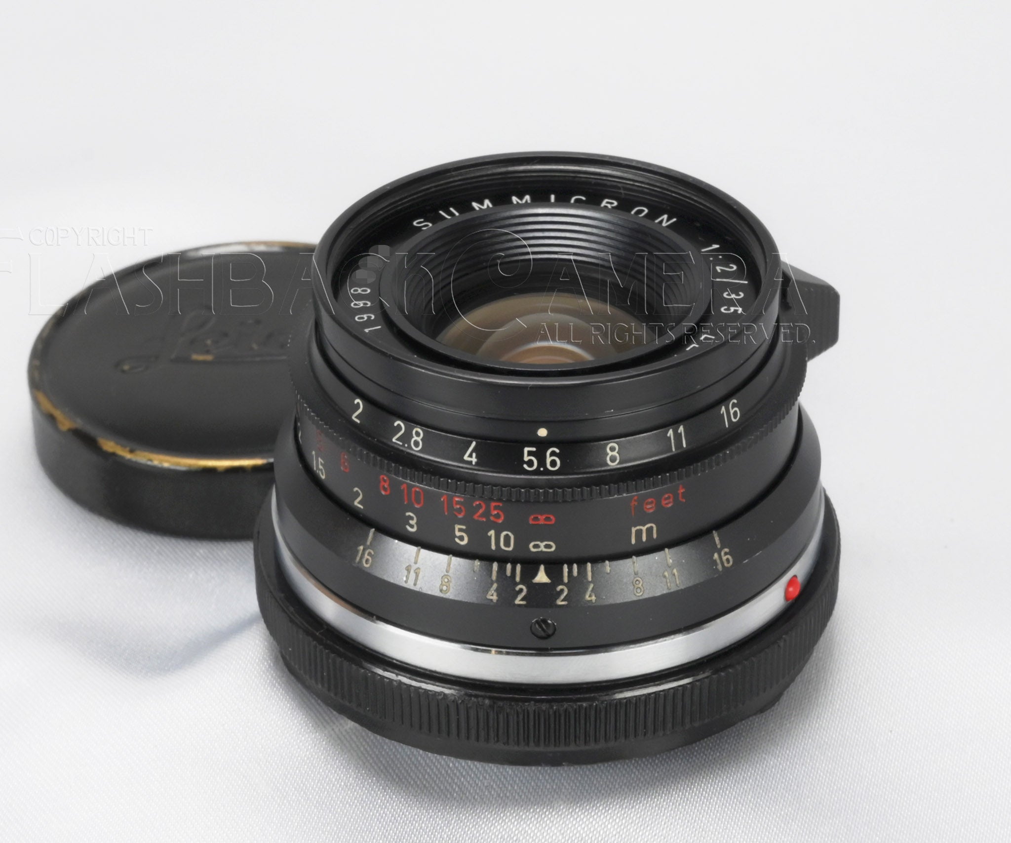 ズミクロン 35mm f2、8枚玉ブラックペイント。製造番号は199万台、1963年ドイツ製造。WETZLAR刻印。距離表記は赤文字、通称レッドスケール。最短撮影距離は0.7m。ライツの製品コードはSAWOM。コーティング色はパープルとアンバーです。