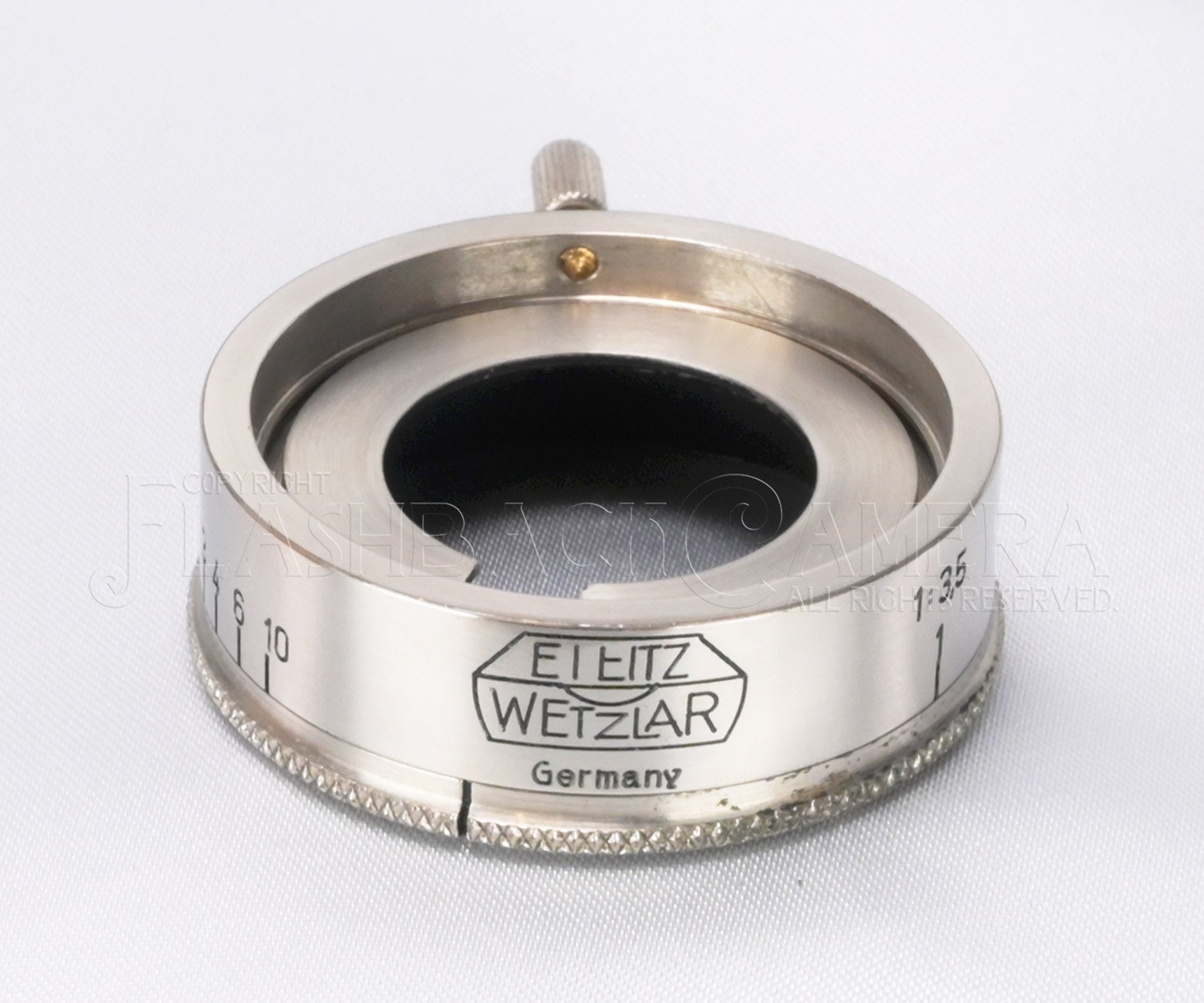 本来はライカLマウントのエルマー 50mm f3.5を、引き伸ばし用に使うためのフードです。暗室での絞り操作を格段に便利にする、画期的なアクセサリーでしたが、現在では撮影用として使われることが多くなっています。