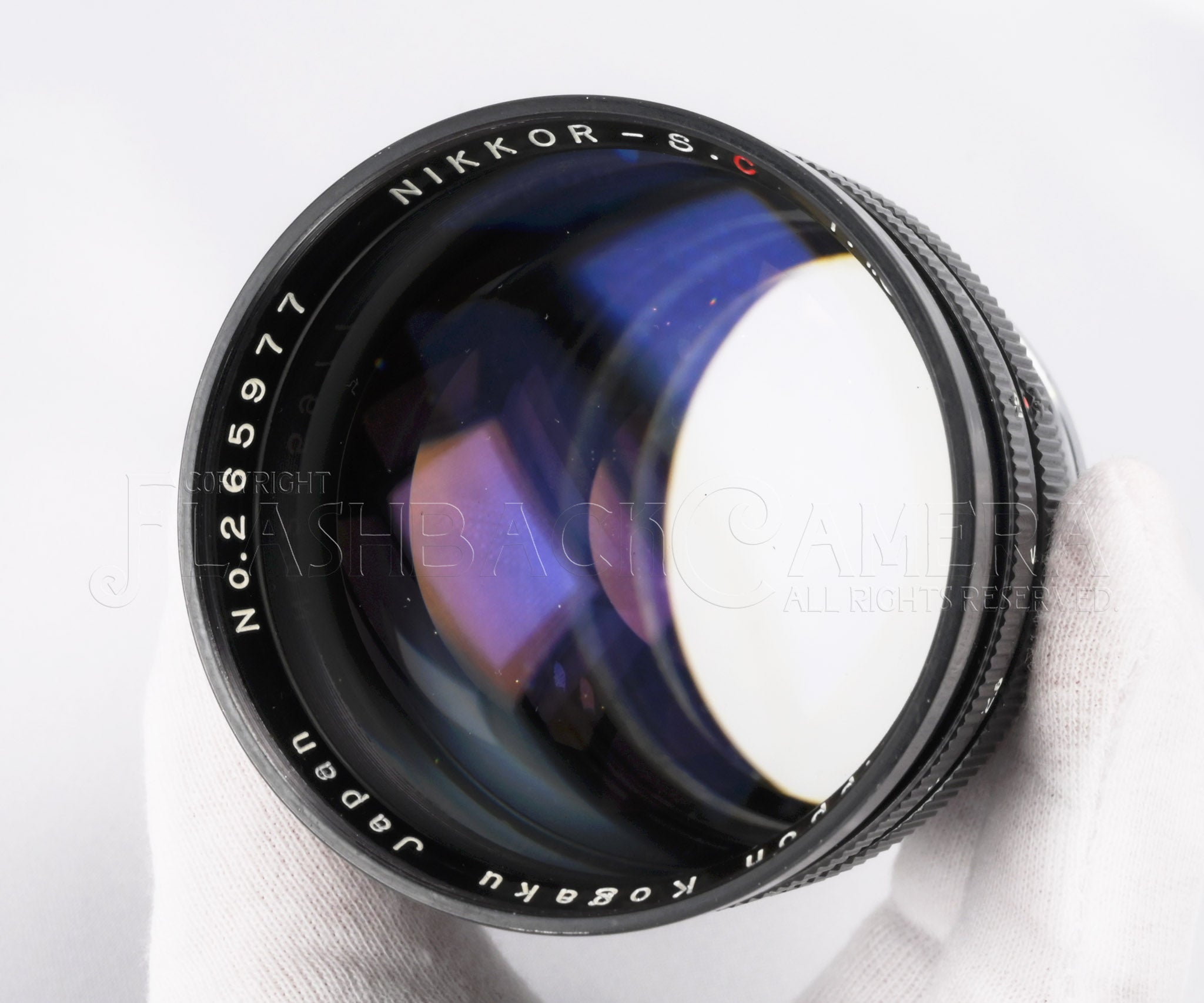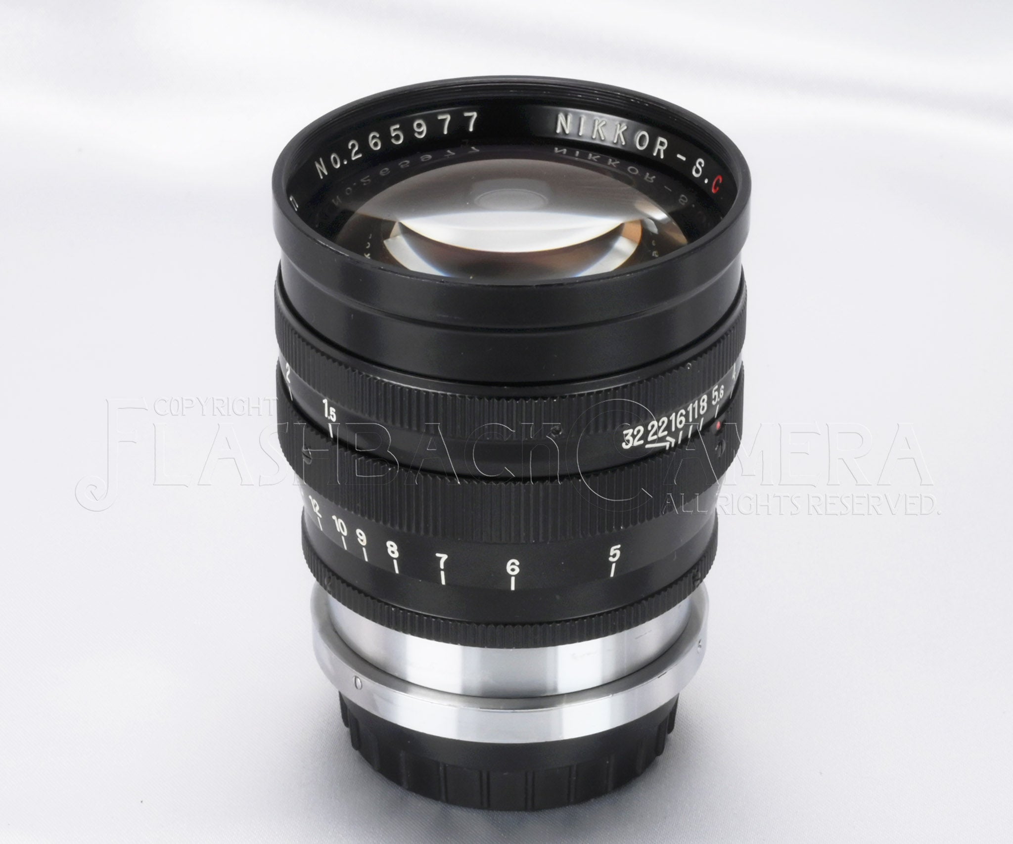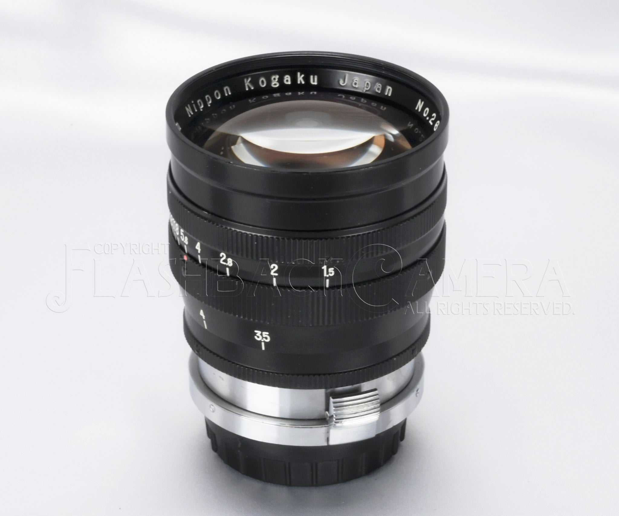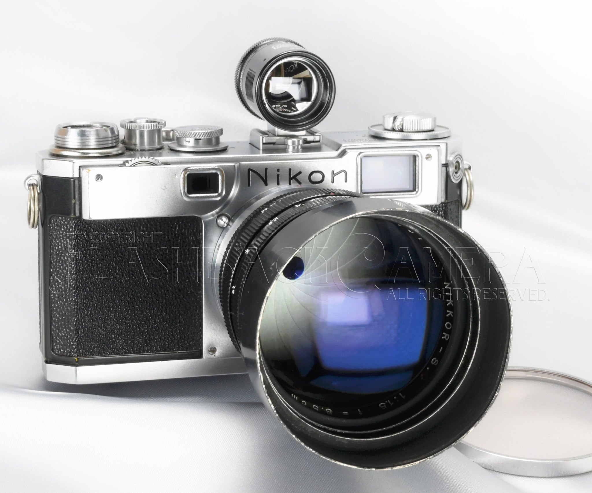 ニッコール-S・C 8.5cm f1.5。ニコンSマウント。日本光学製の大口径中望遠レンズ。ブラックペイントとクロームメッキ仕上げの堂々たる立派なつくり。3群7枚構成。feet表記。フィルターは60mmねじ込み、または二分割できるフードに、シリーズ8フィルターを挟み込みます。