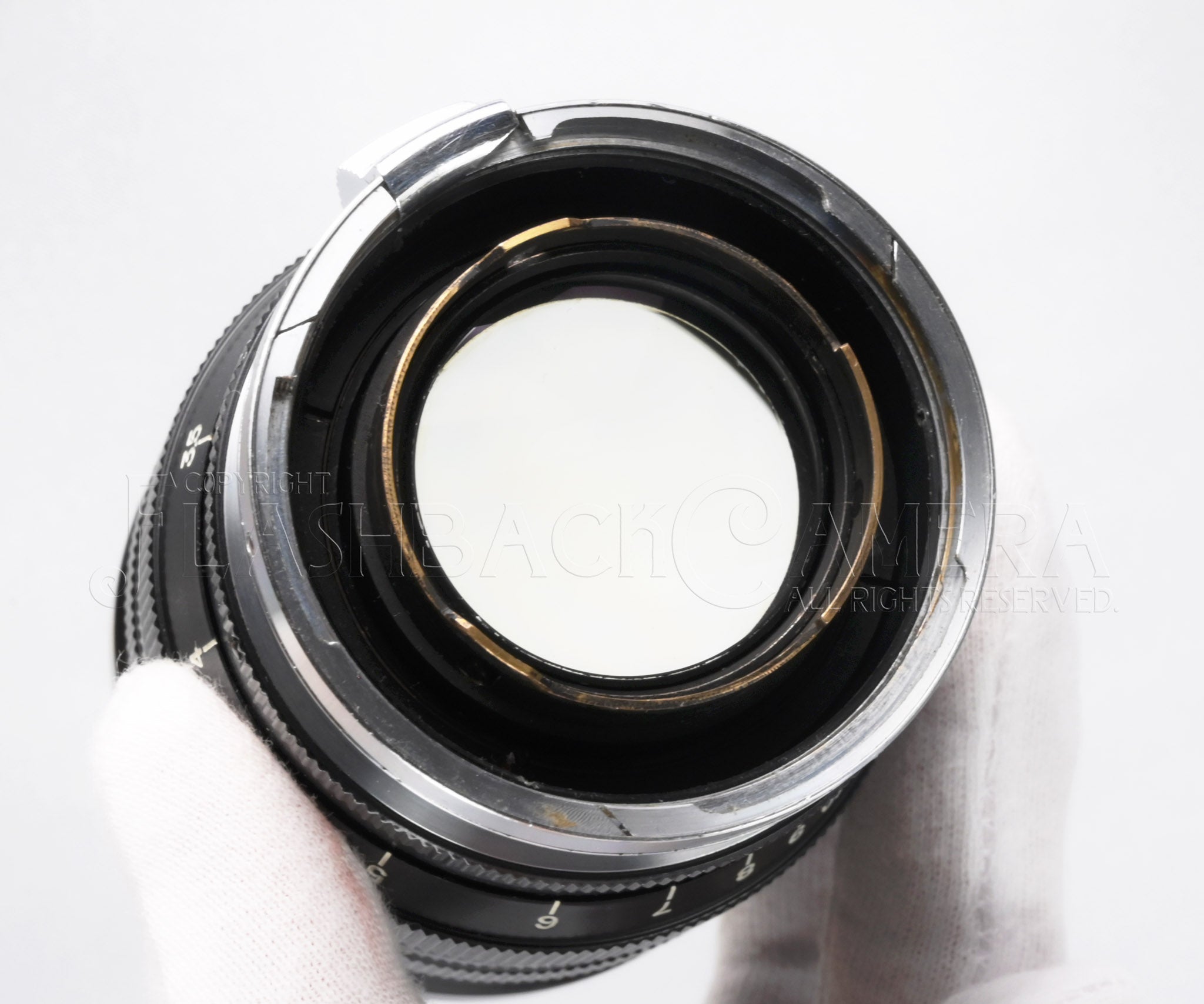 絞り羽根やヘリコイドなど各部の動作滑らか、絞り羽根も綺麗です。当店の点検用ニコンSボディにてピントや距離計連動チェック済、ライカSLで描写確認済み。