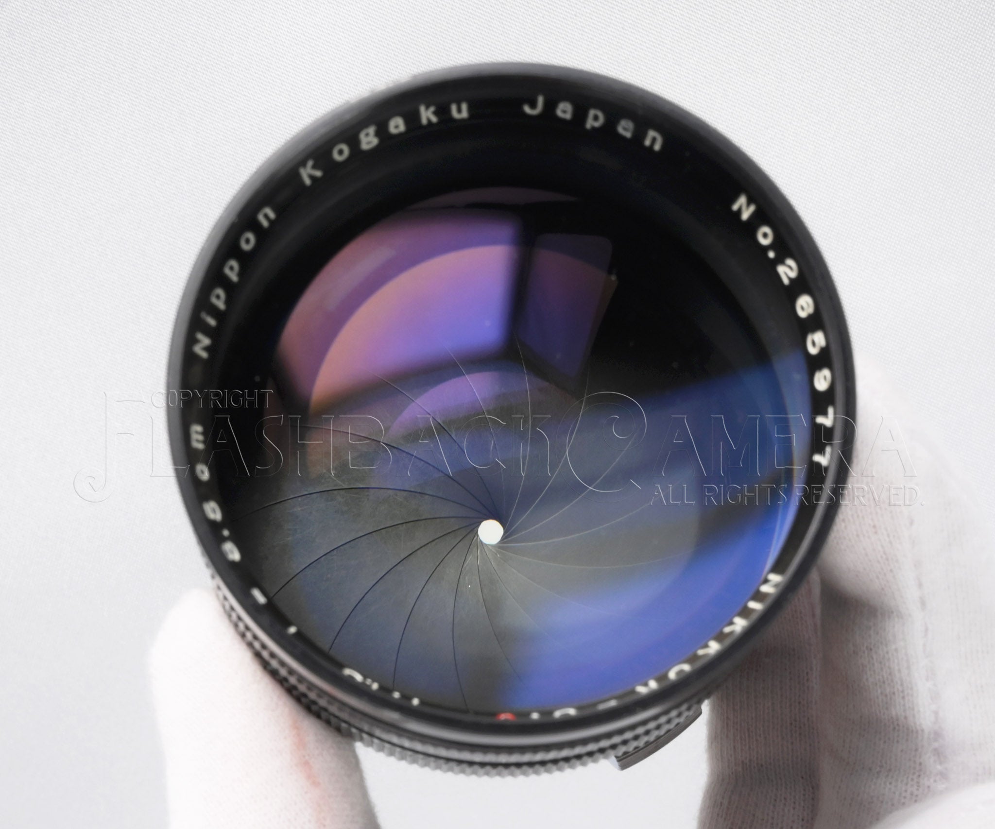 前玉にはごく浅い拭きキズが数本、中玉にはフチに沿ってニッコールお約束のバルサム切れが少々見られますが、撮影への影響は感じられませんでした。他、カビやクモリは見られず、スカッと抜けの良いガラスコンディションです。