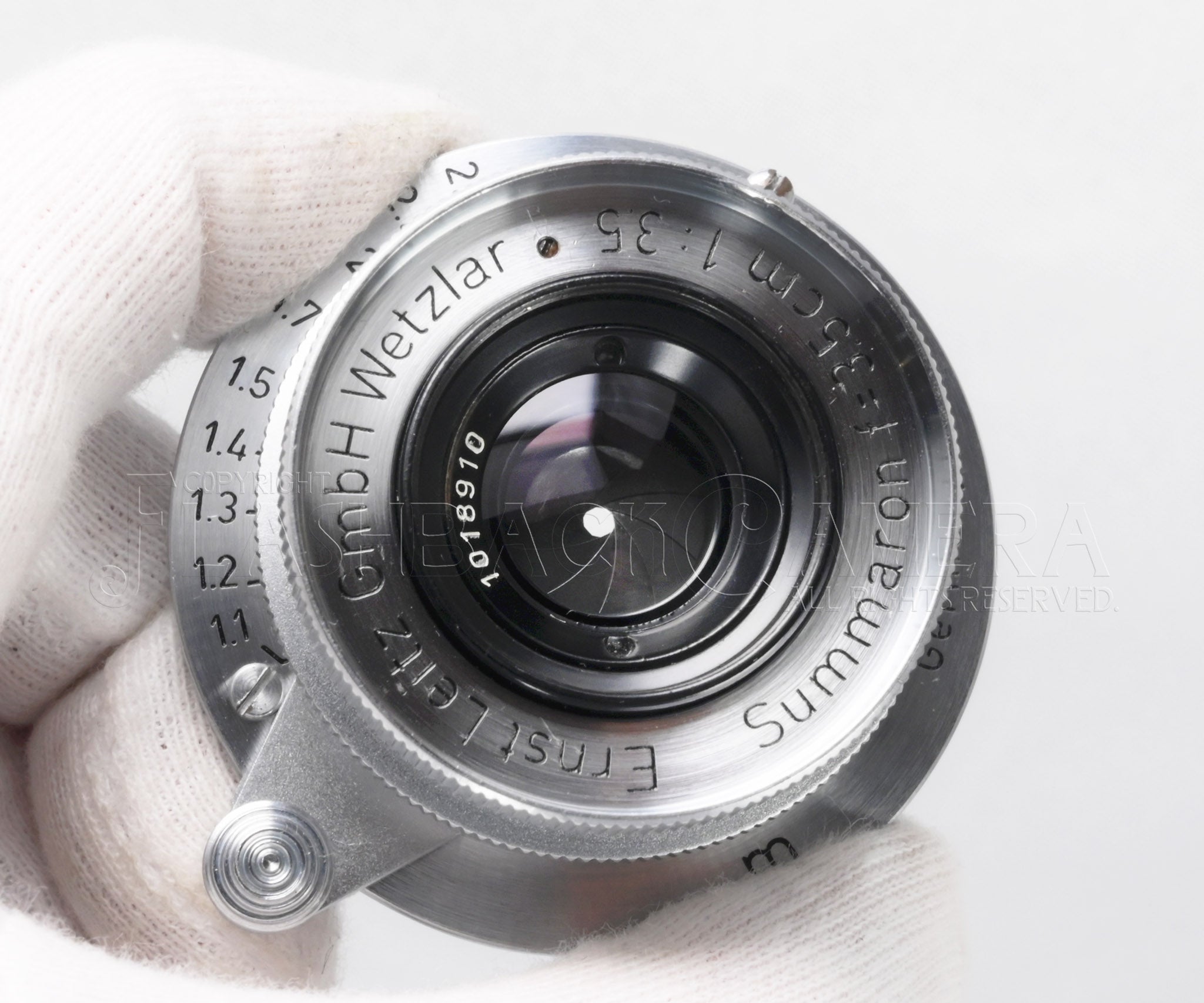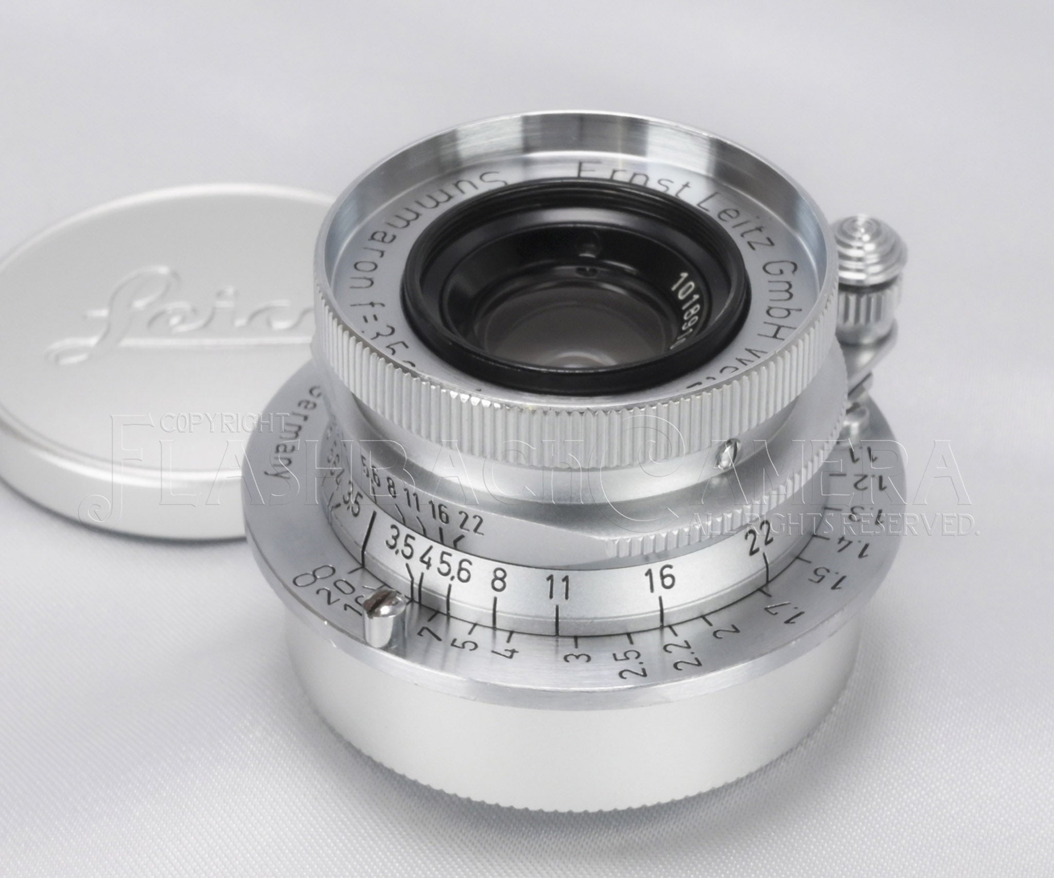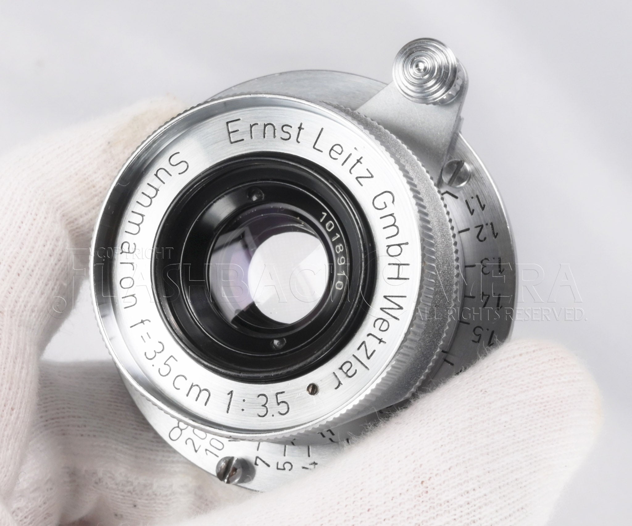 ズマロン35mm f3.5、前期型、A36モデル。ライカスクリューマウント。製造番号101万台。1952年製。製品コードはSOONC。4群6枚構成のダブルガウスタイプ。距離指標はメートル表記。