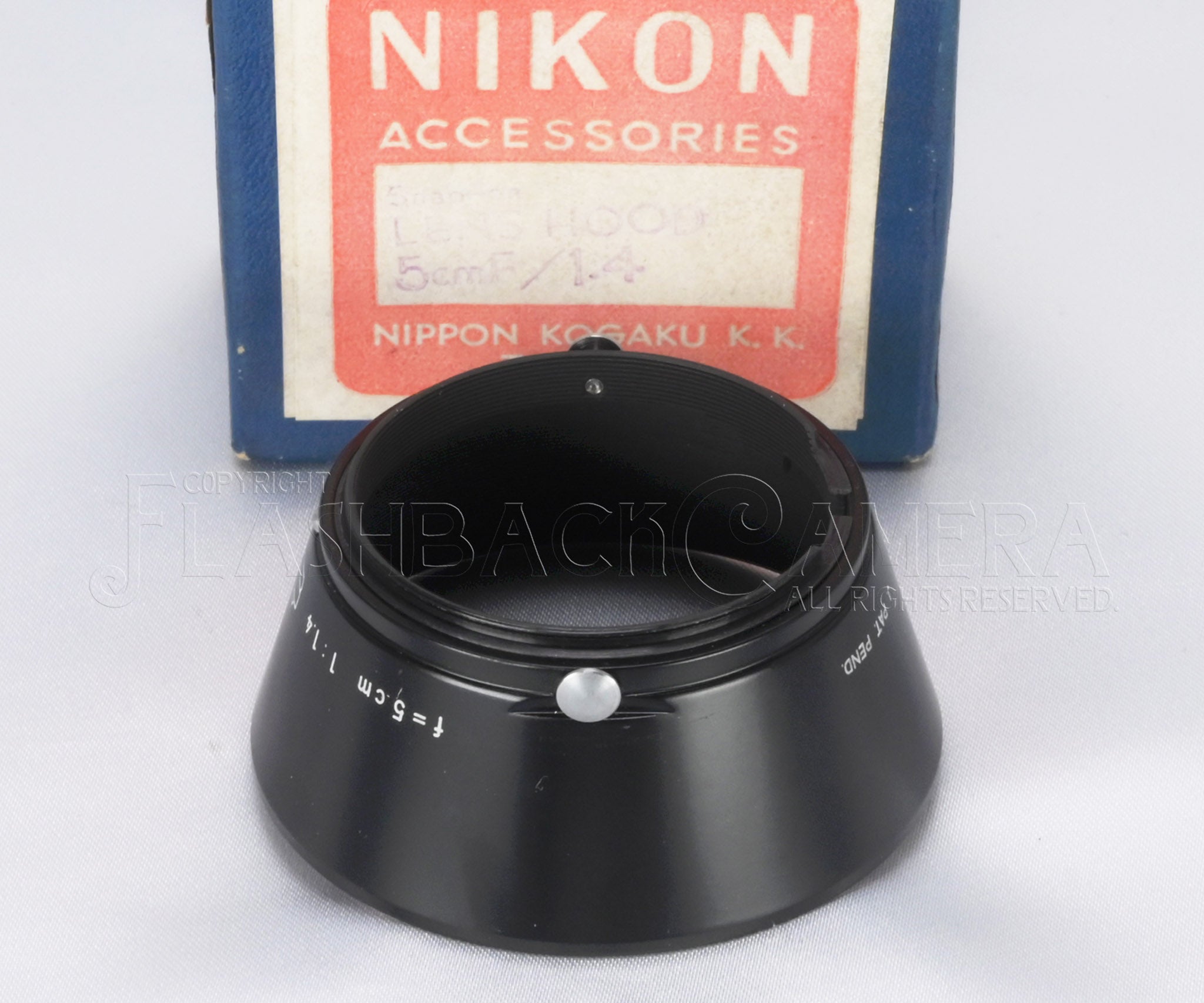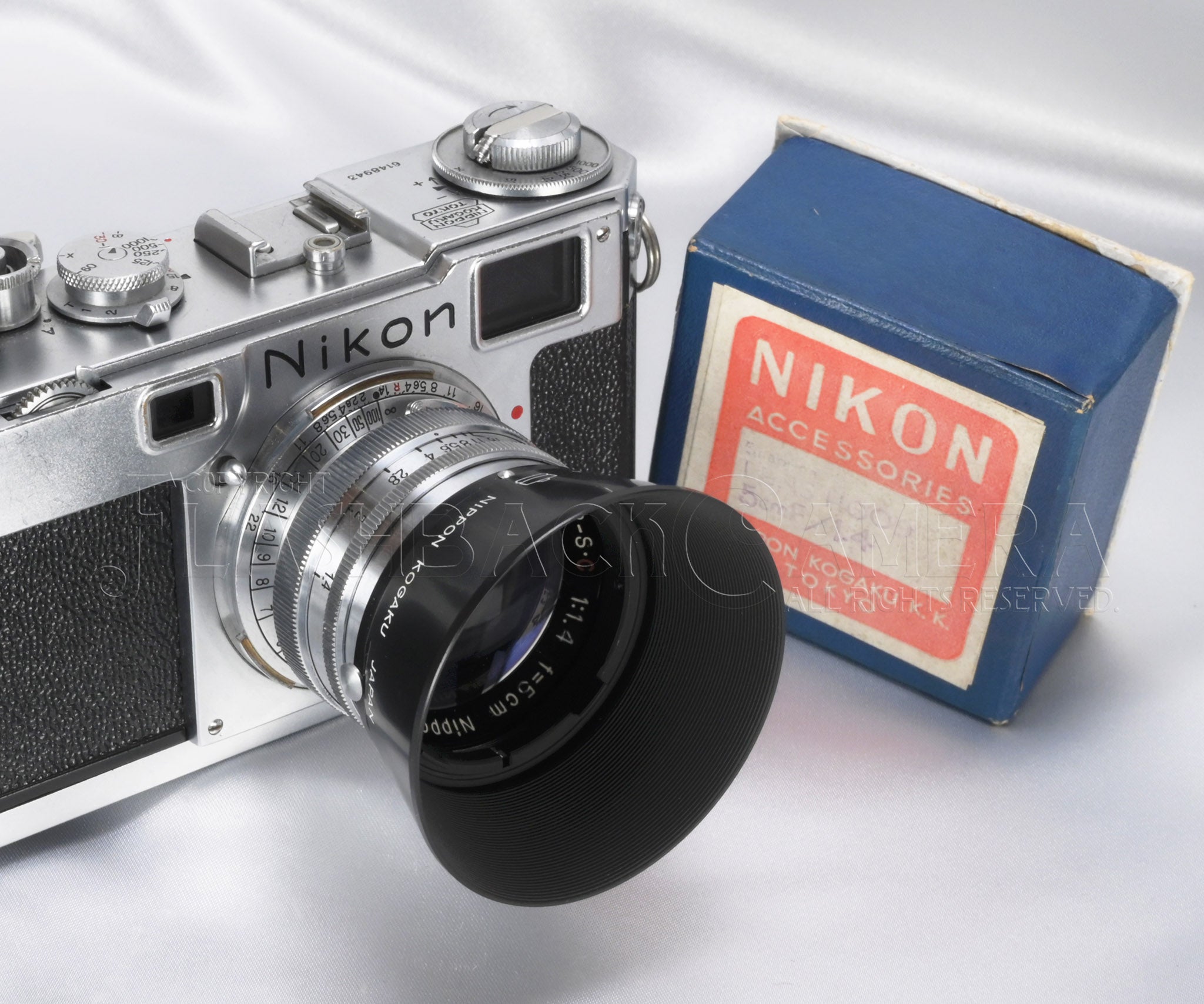 日本光学製。ニコンS用のニッコール 50mm f1.4のレンズフードです。おにぎりマーク入り。NIPPON KOGAKU銘。使用感無く、新品状態です。コレクションにどうぞ!