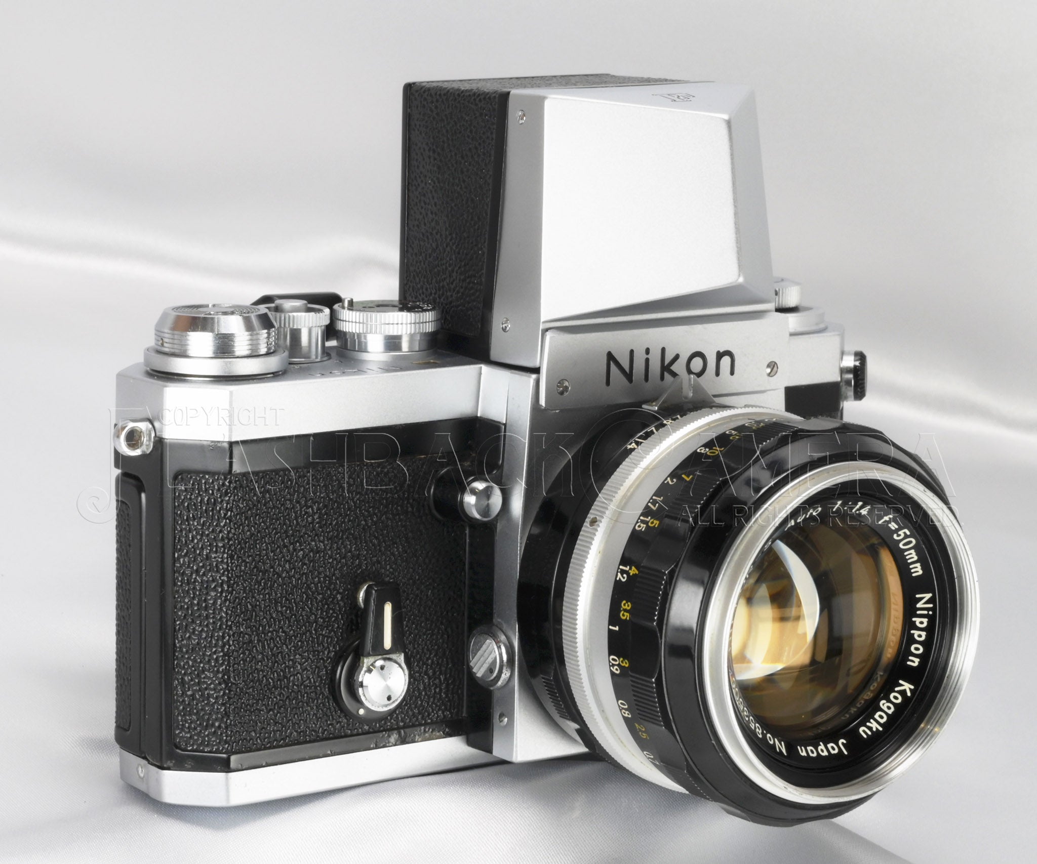ニコン・ニューF。734万台。アクションファインダーとニッコール50mm f1.4付き。実用向けのセットです。