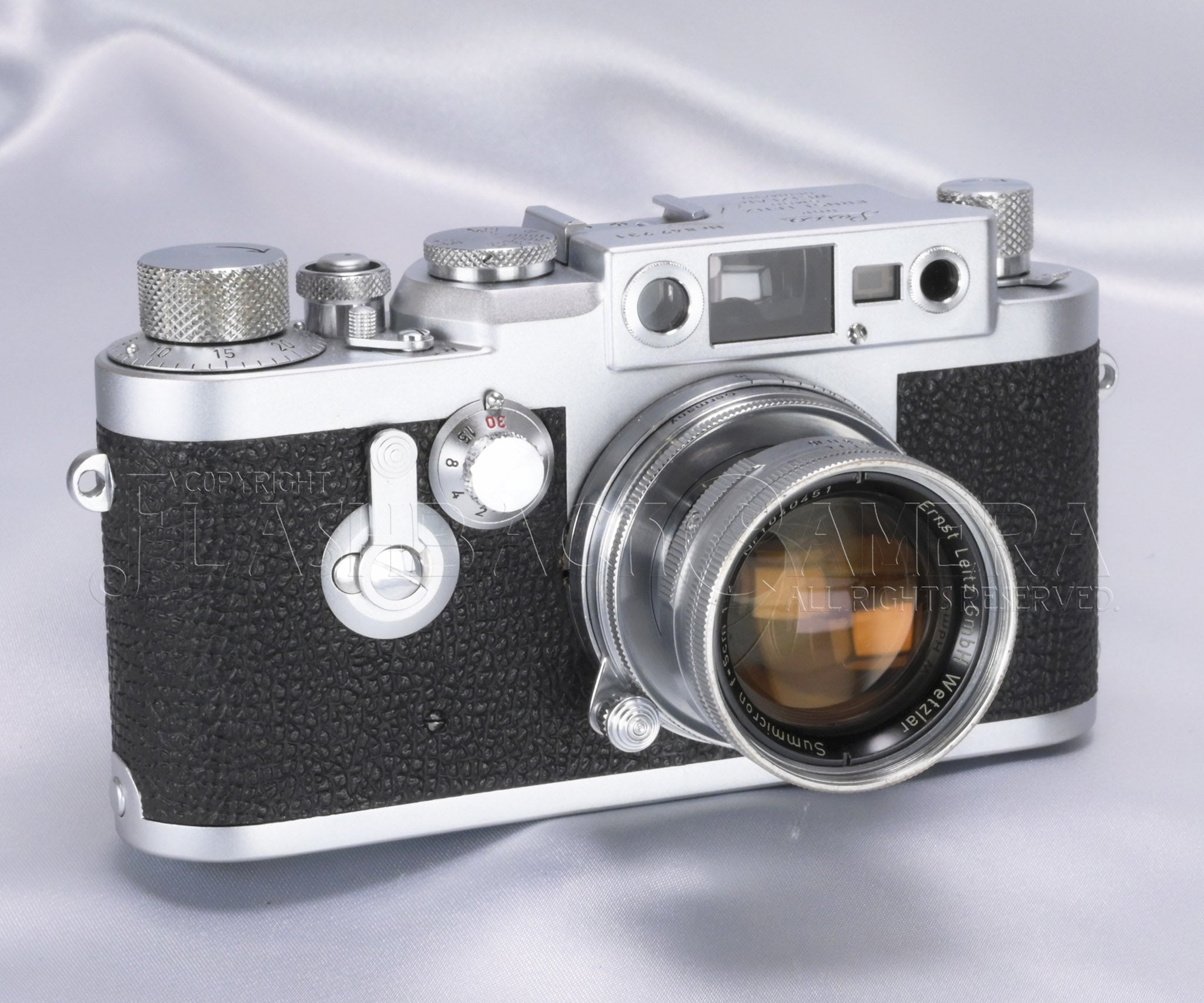 本品は、トリウムレンズを採用した、通称・放射能ズミクロン。ガイガー・カウンターにて確認済で、なかなかしっかりとした値が出ます。製造番号は104万台、1952年製。メートル表記。