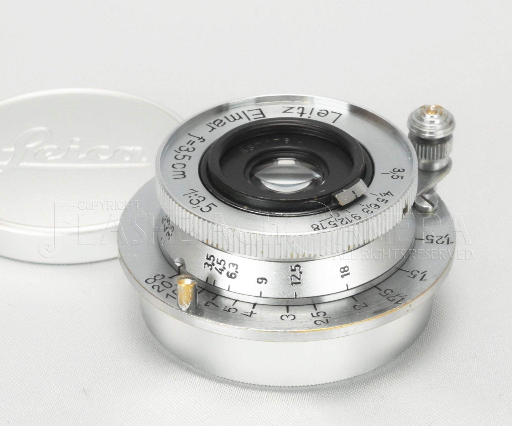 ノンコートのエルマー 35mm f3.5。EKURZCHROM。製造番号は55万台、1940年製。メートル表記。3群4枚構成。ライツ製レンズとしては、ヘクトール 28mmに次いで2番目に薄いレンズです。