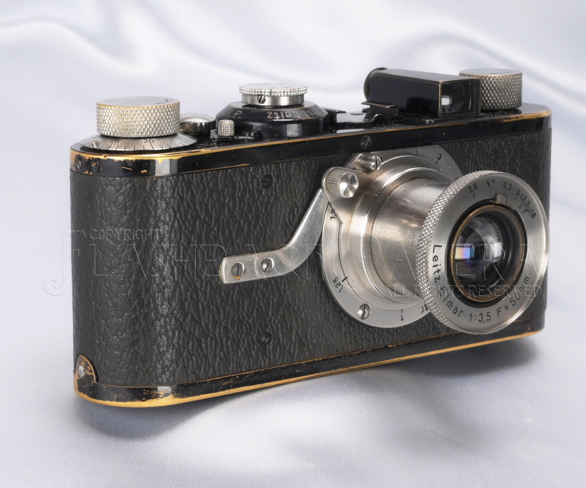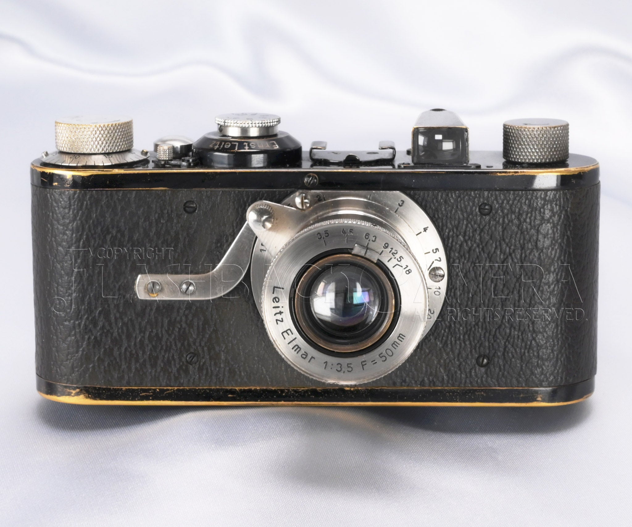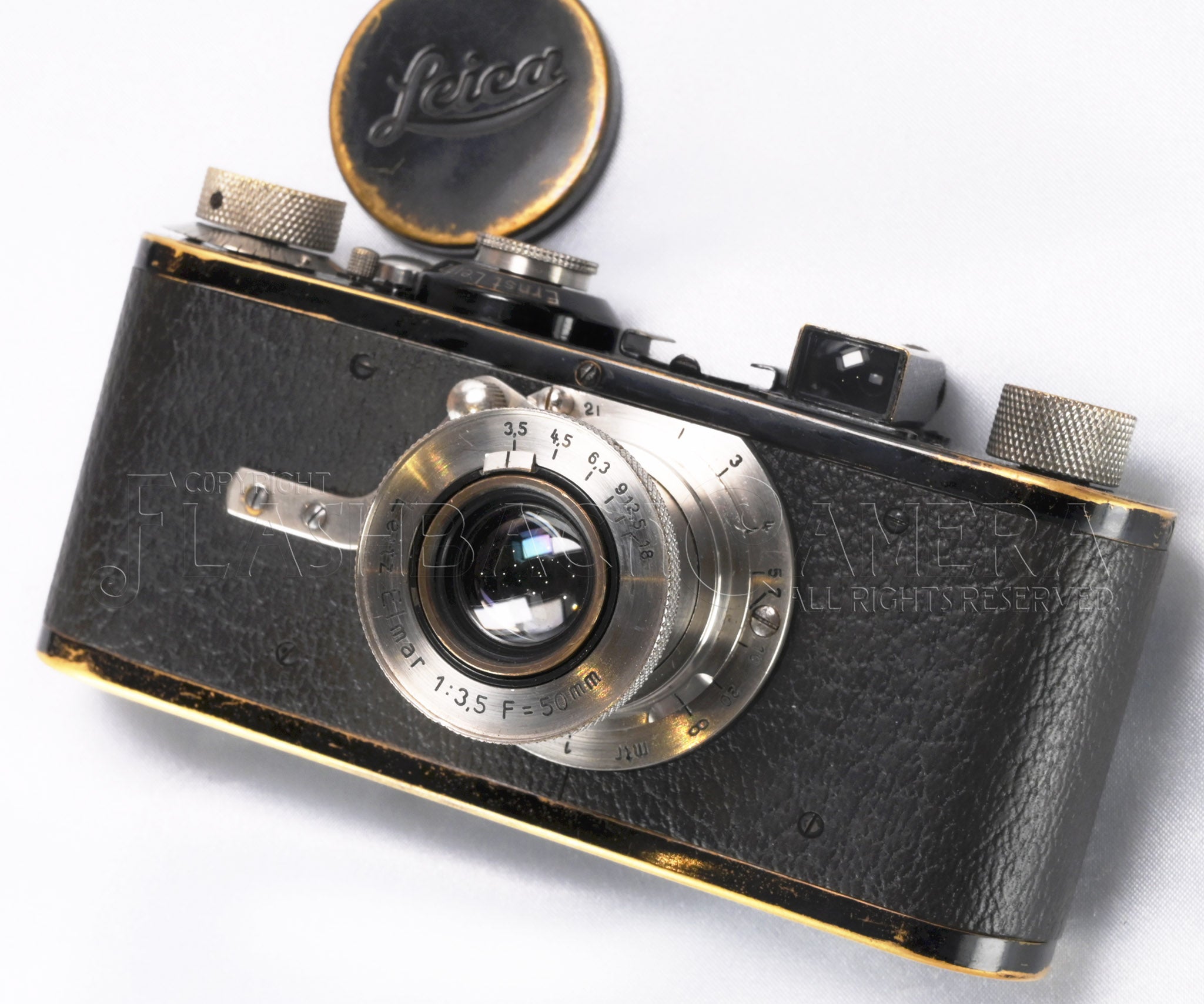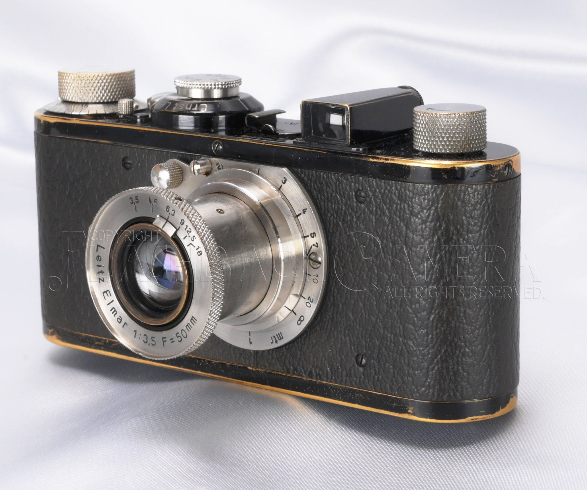 製造番号5千番台。1927年(昭和2年)製の旧エルマー付 ライカA型の初期タイプ。距離表記はメートル。ライツの製品コードはLEICA。ライカの歴史がここからスタートする原点となるモデルです。製造より98年の歳月が経過しており、まもなく100歳。2027年には是非ともお祝いしてあげたいですね!