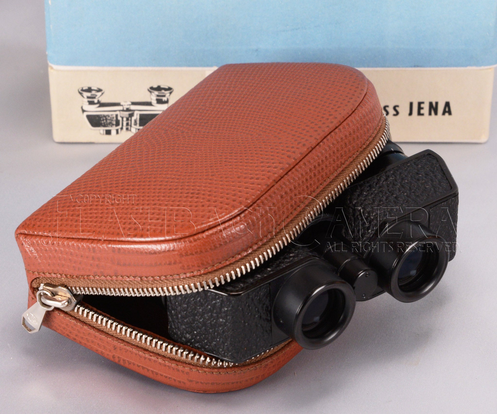 東独ツァイスらしい、時代の空気をまとった元箱のデザインや色合い、ケースの雰囲気も洒脱なもの。こちらも美しい状態を保っています。