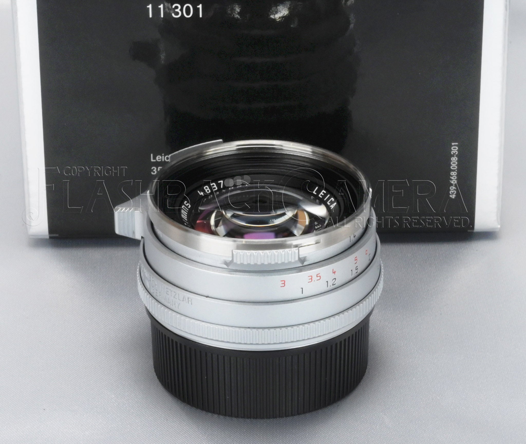 ズミルクス-M 35mm f1.4。1961年に登場し、現在も根強い人気で高騰を続ける初代ズミルックス 35mm、通称スチールリムの復刻版。本品は2022年の発売。製造番号483万台。ライカの製品コードは11301。