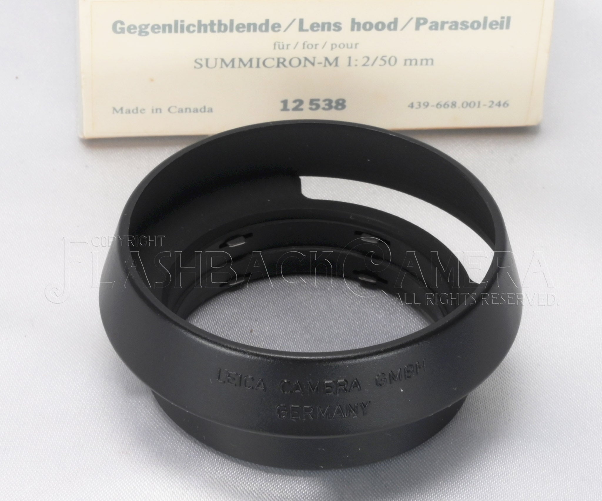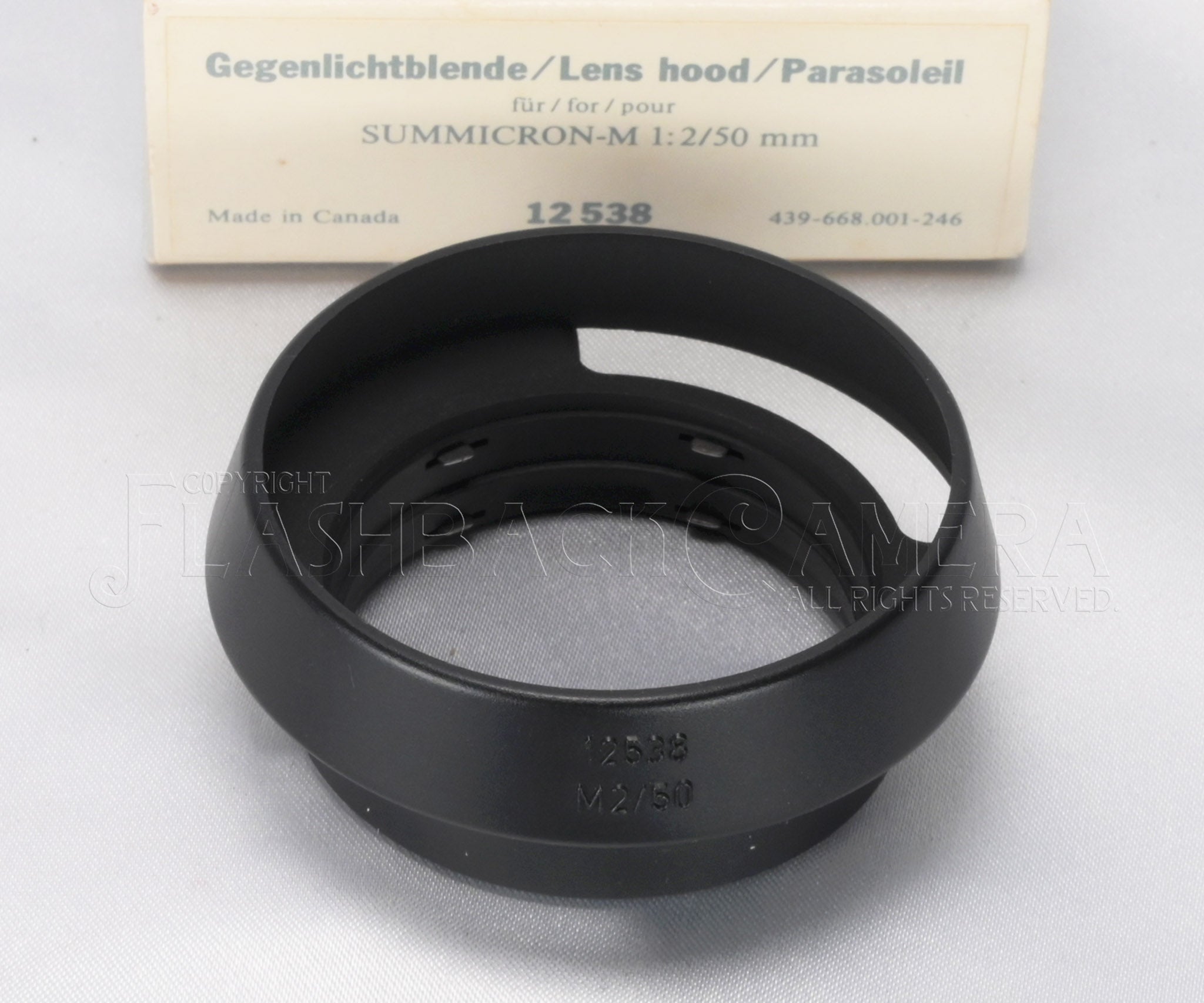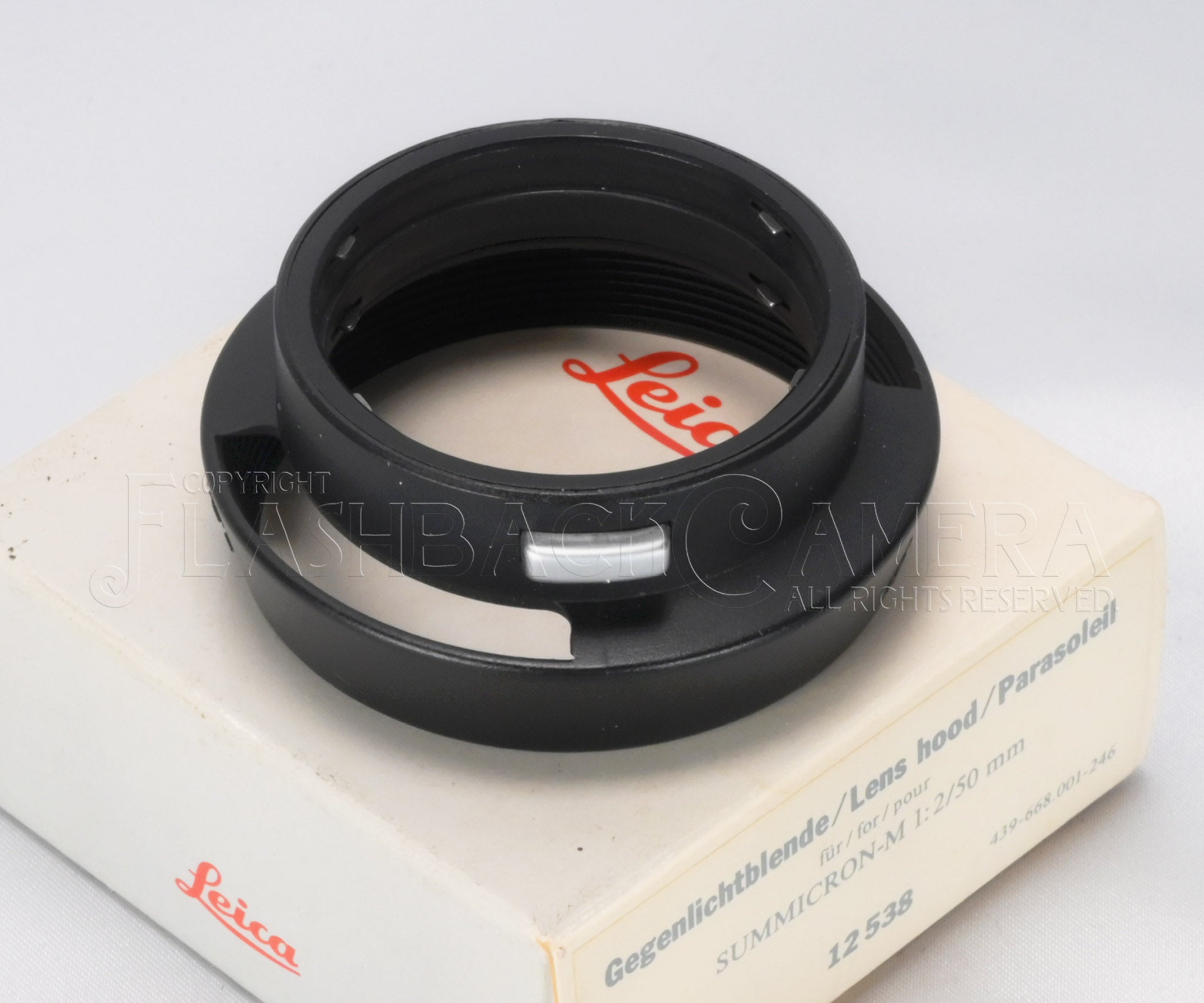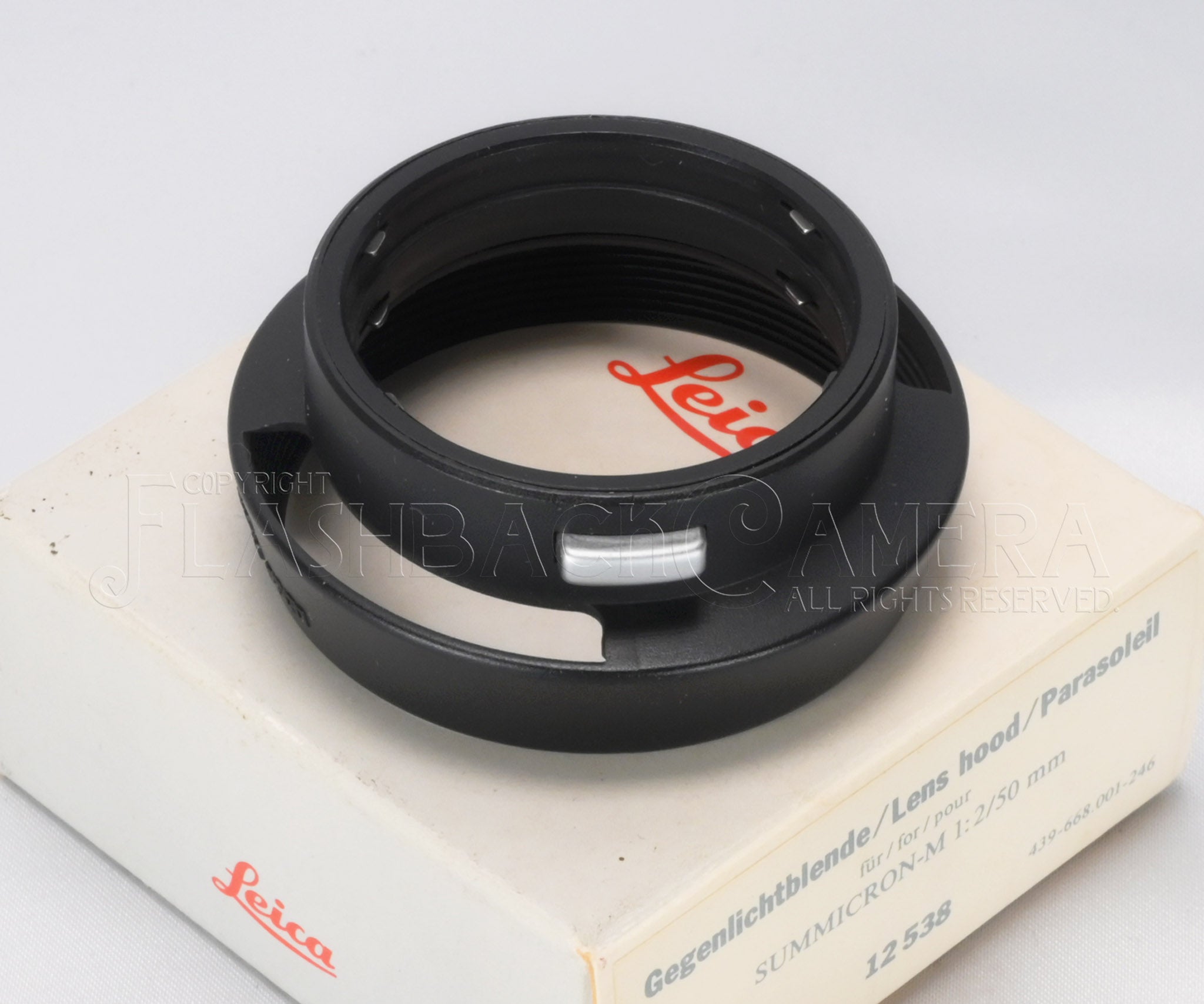 12538。ズミクロン 50mm f2等、E39レンズ用純正レンズフード。プラスチック製。12585の後継モデル。