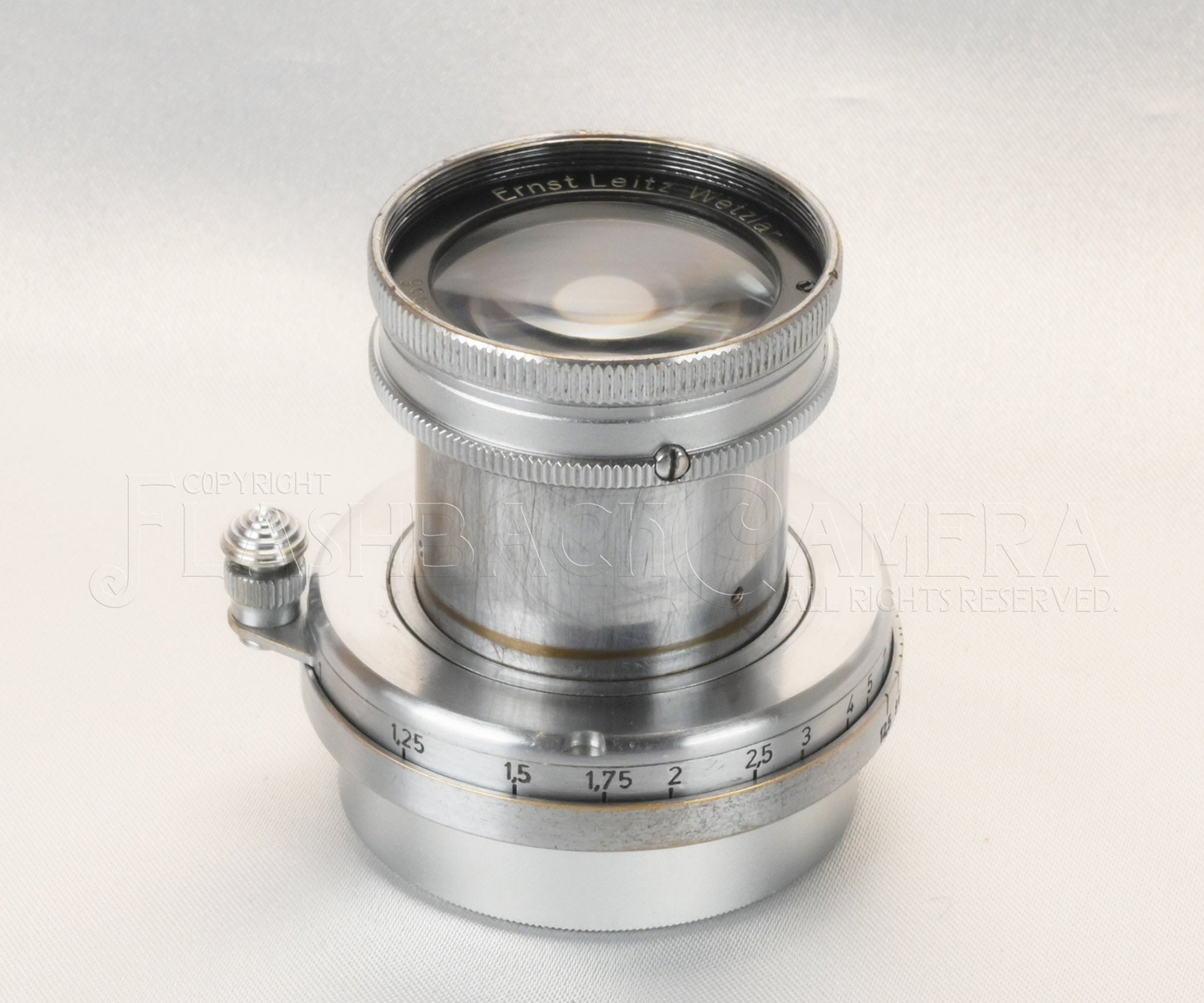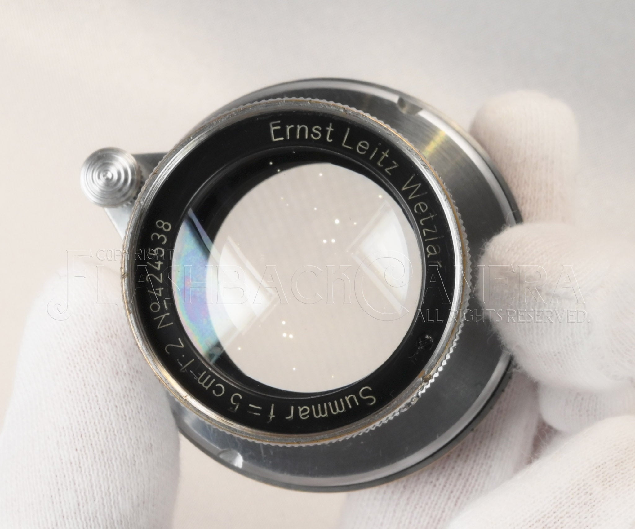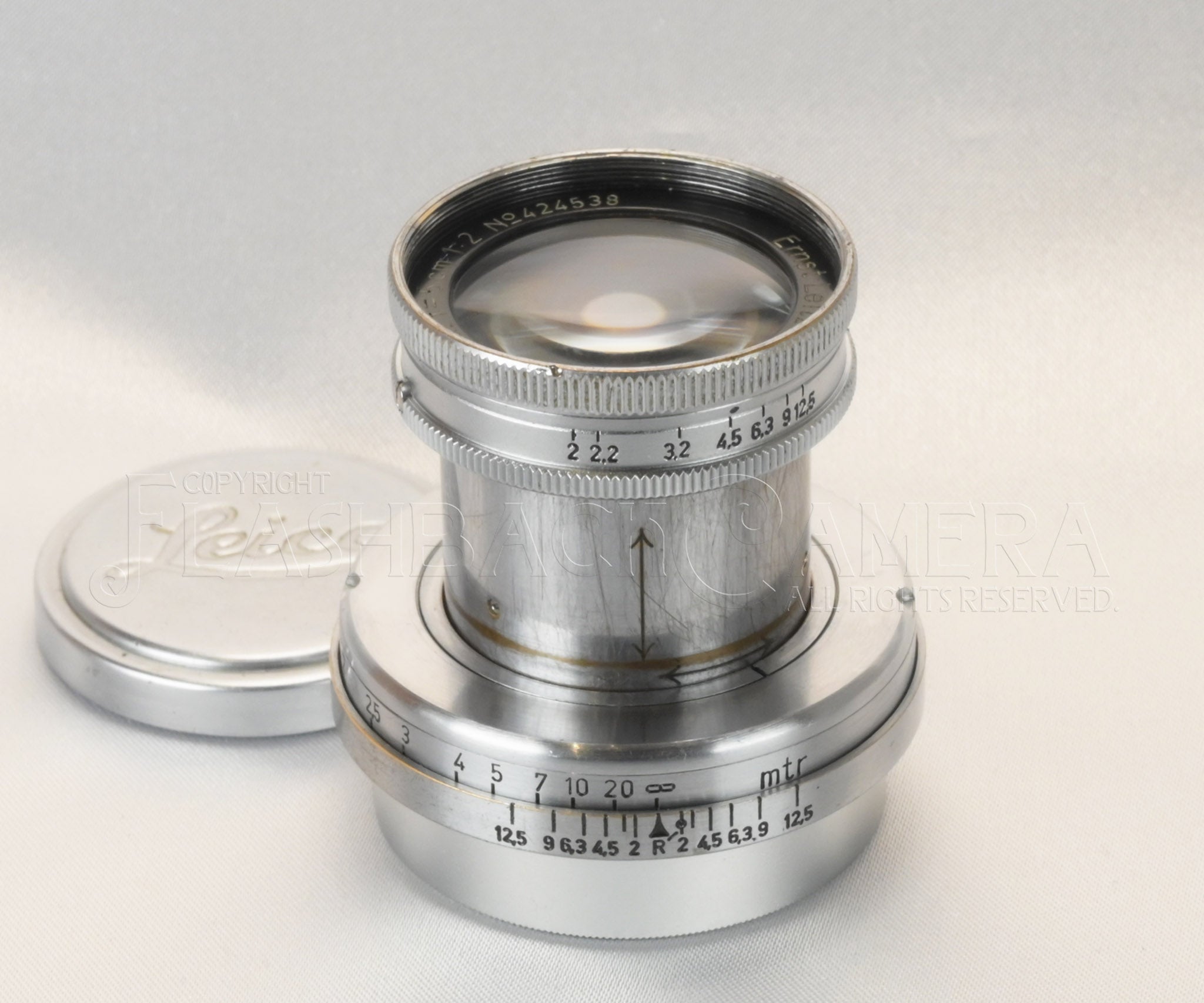 ズマール 50mm f2。クローム鏡胴。製造番号は42万台、1938年製。ライツのコードはSUMUS。