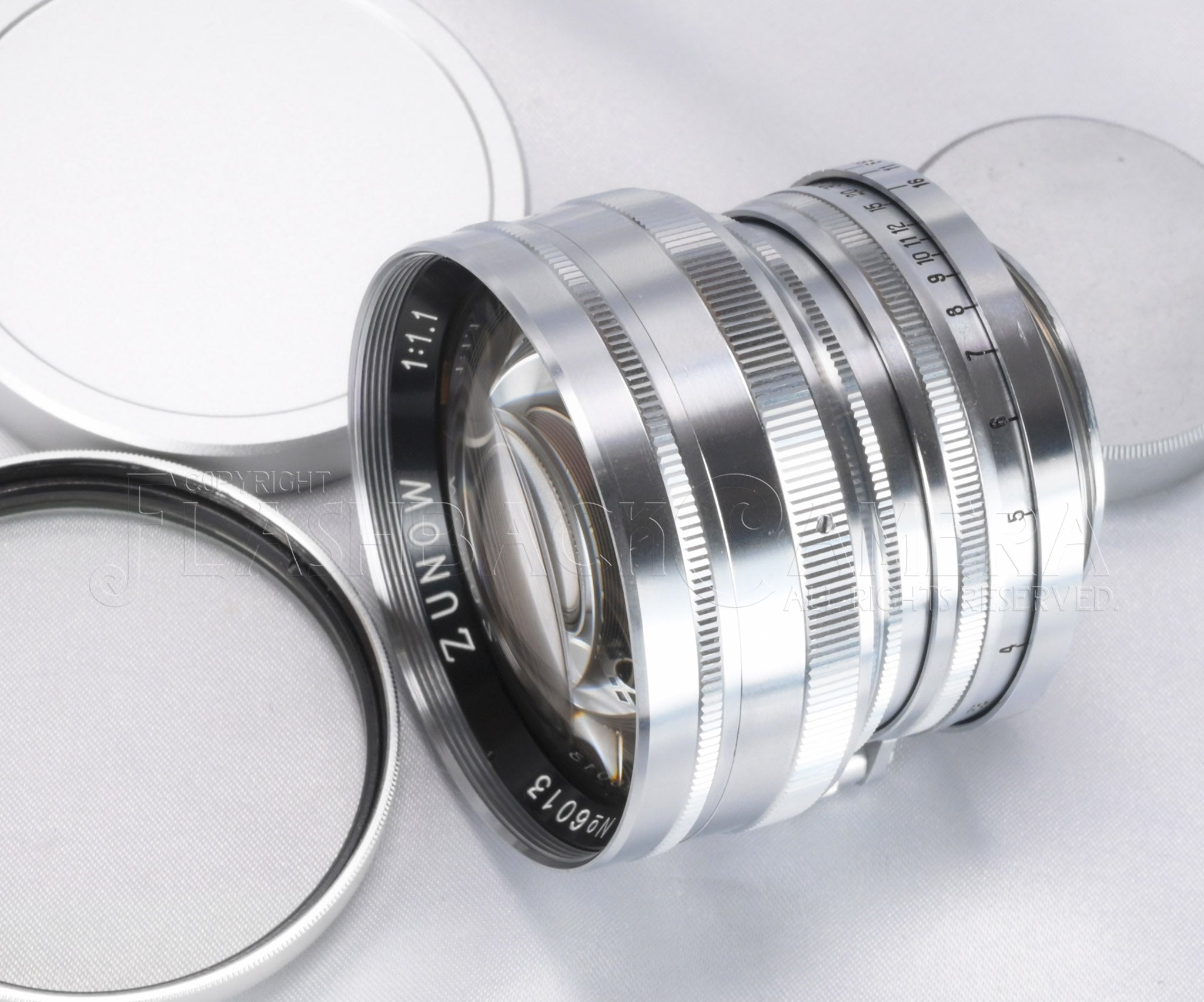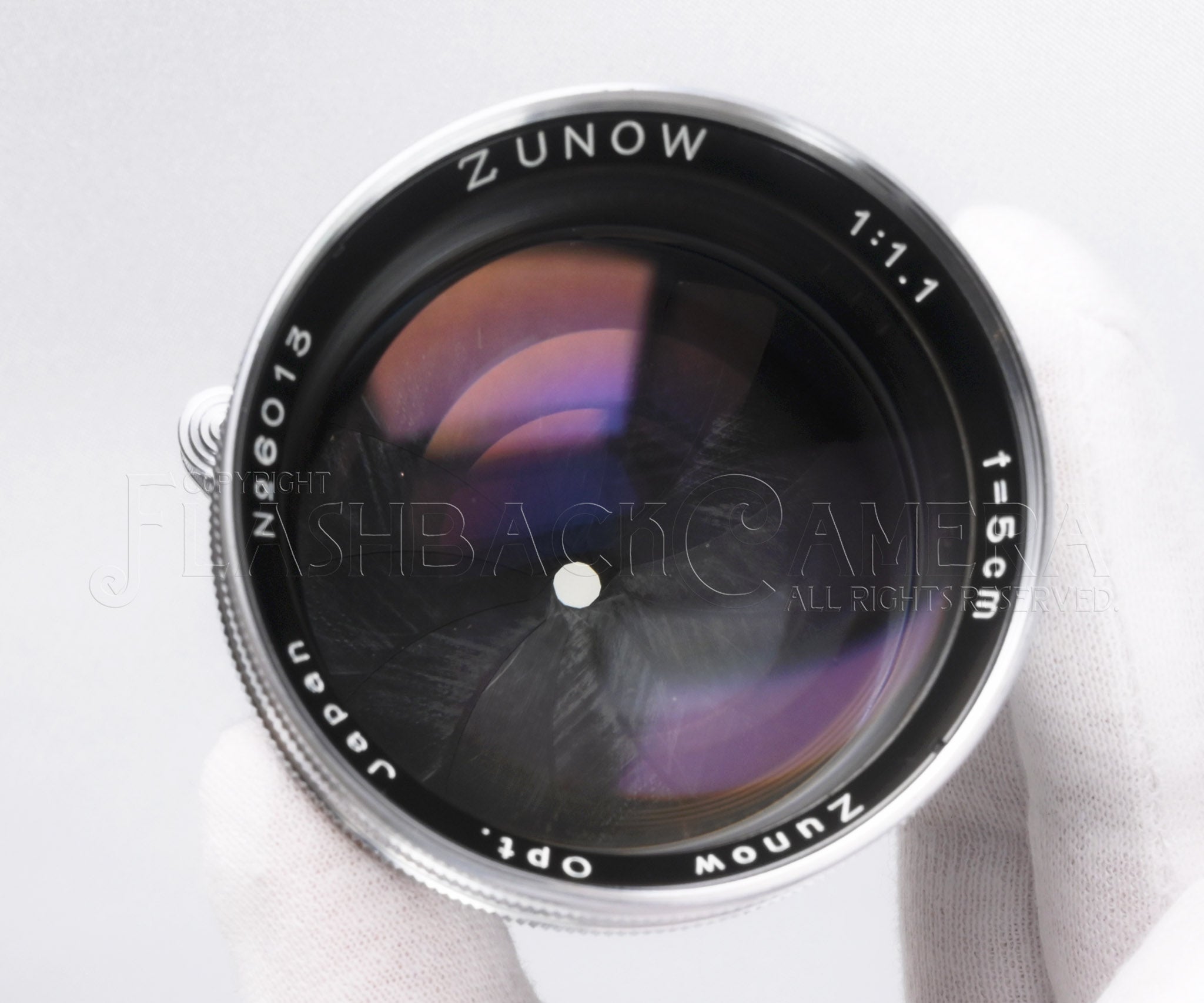 くびれとローレットがリズミカルで実に格好良い鏡胴デザイン、独特のブランド名称「ズノー」、盛大なフレア三昧の絞り開放描写、短命ながらも 世界一明るい標準レンズとして、戦後の日本人の心を沸かせた存在であった事でしょう。魅力とストーリーに溢れた、唯一無二の国産超大口径レンズです。