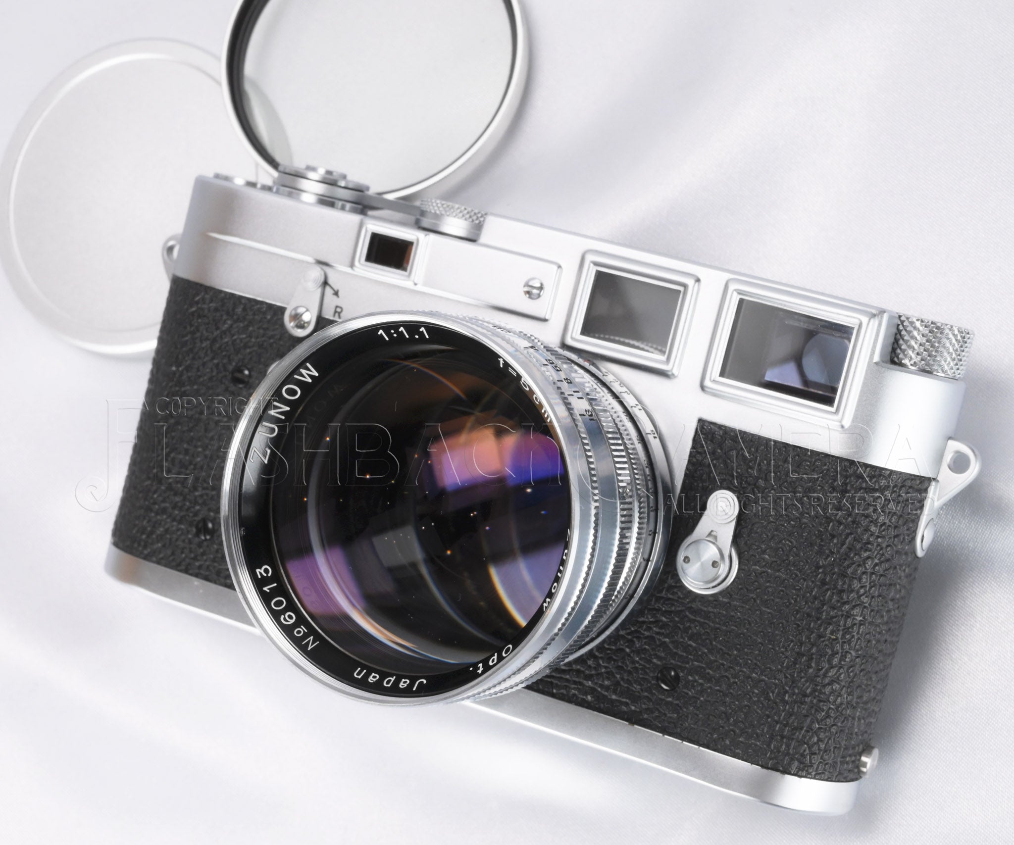 ズノー 50mm f1.1(初期、ピンポン)は1953年に登場。当時無名に近い帝国光学が、世界一の明るさを持ったレンズを衝撃的にデビューさせました。このズノーレンズの登場を口火に国産超大口径レンズ競争が勃発、小西六、日本光学、キヤノン、富士写真工業などの各社から、f1近傍クラスの魅力的なレンズが次々と発売されました。